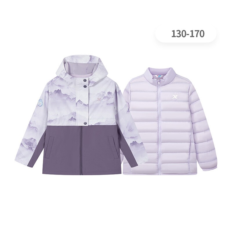 特步儿童羽绒服女大童户外冲锋衣冬季新款三合一可拆卸保暖两件套
