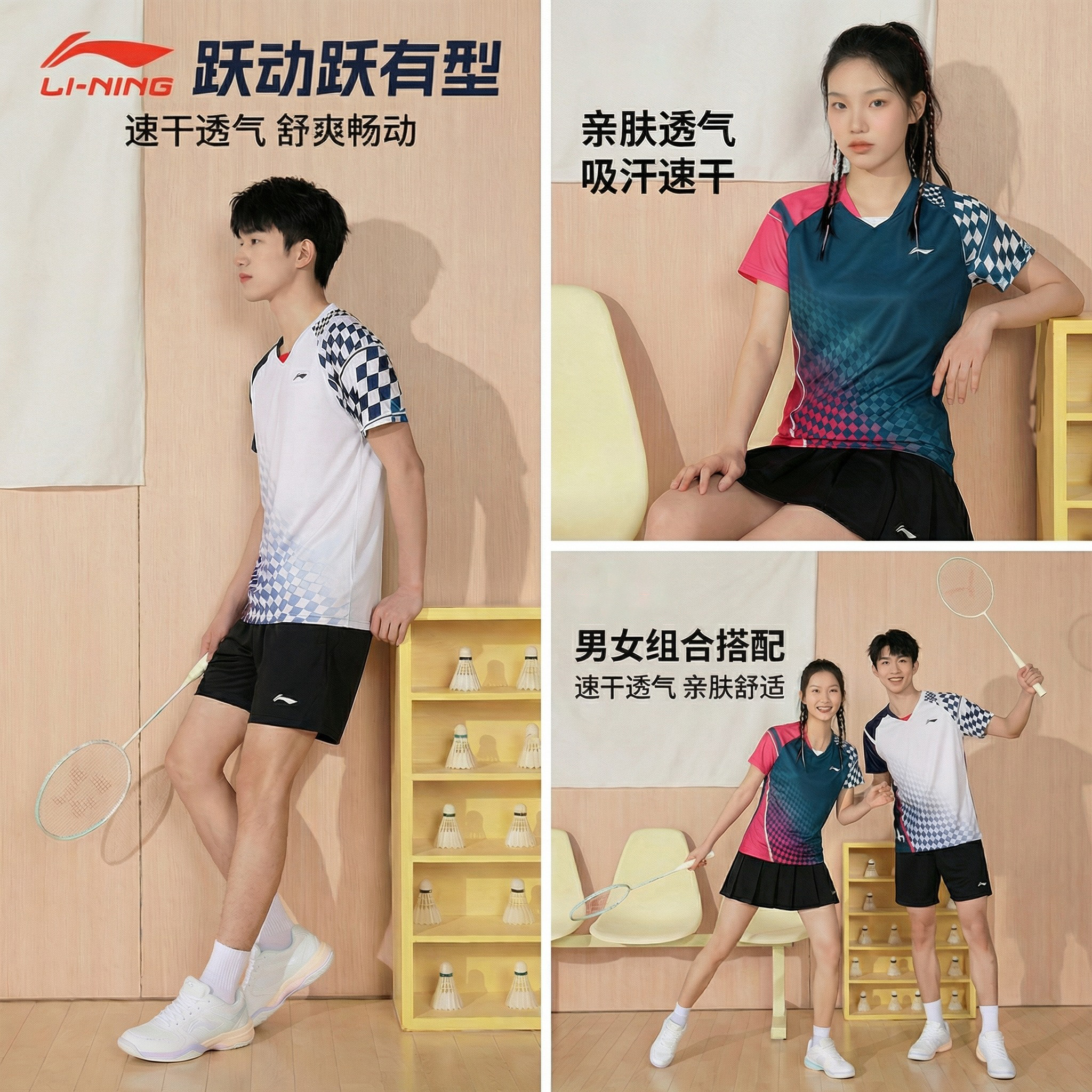 2026新款李宁羽毛球服套装速干上衣乒乓球网球服男女夏季短袖T恤