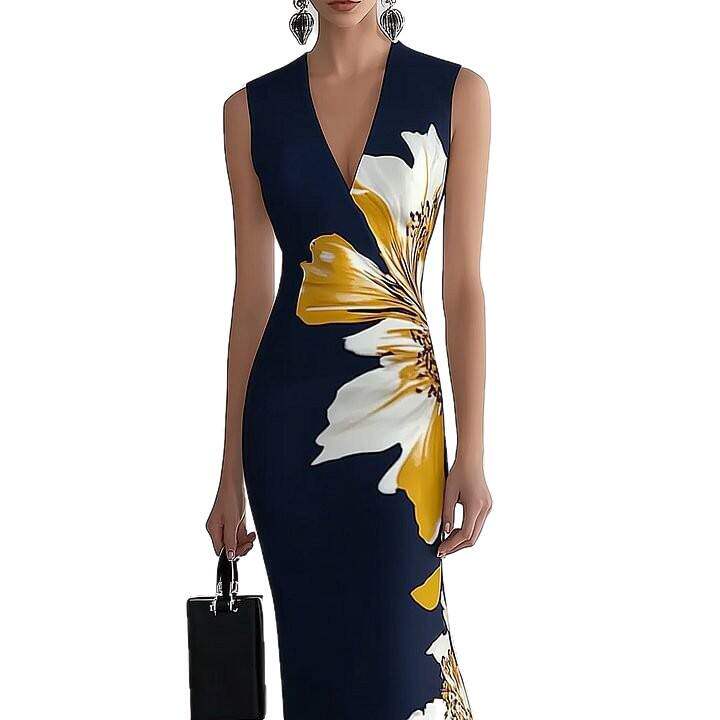 2025 欧美 亚马逊 速卖通 V领 无袖 定位数码印花 连衣裙长裙长袖