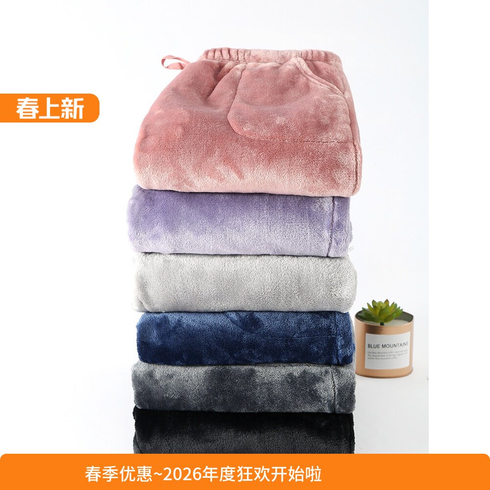 睡裤女秋冬加厚特厚法兰绒长裤直筒散口宽松大码珊瑚绒冬季裤子