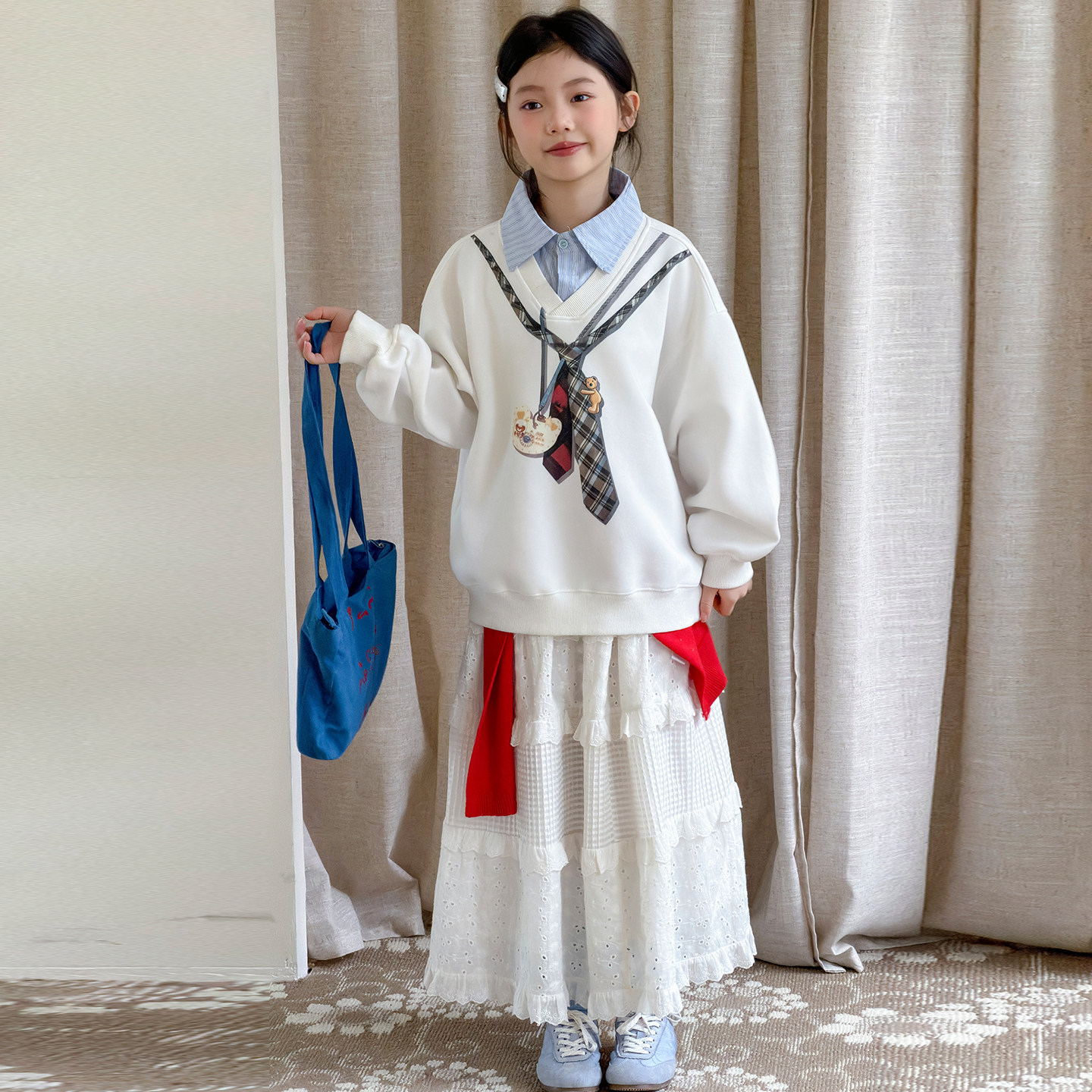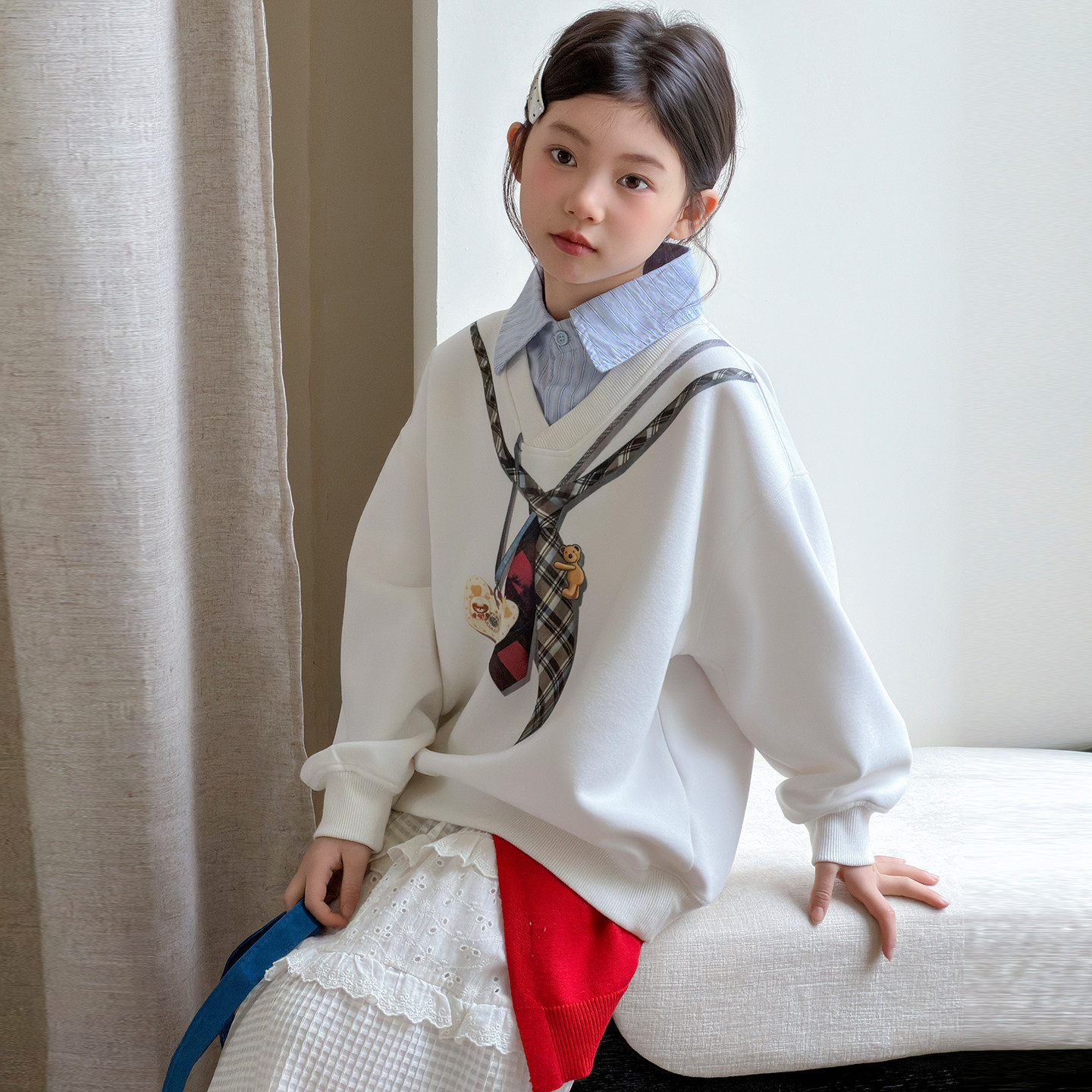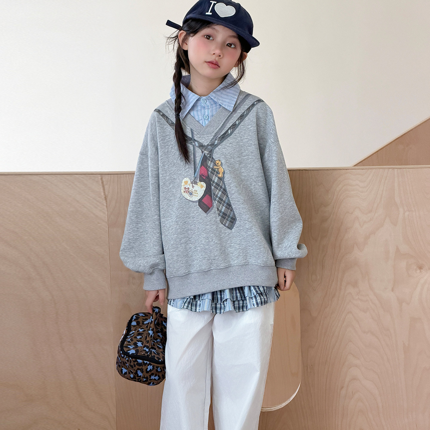 女童假两件卫衣春款2026新款儿童春季上衣洋气女大童外套春装衣服
