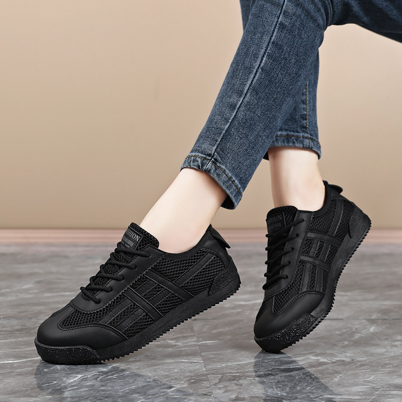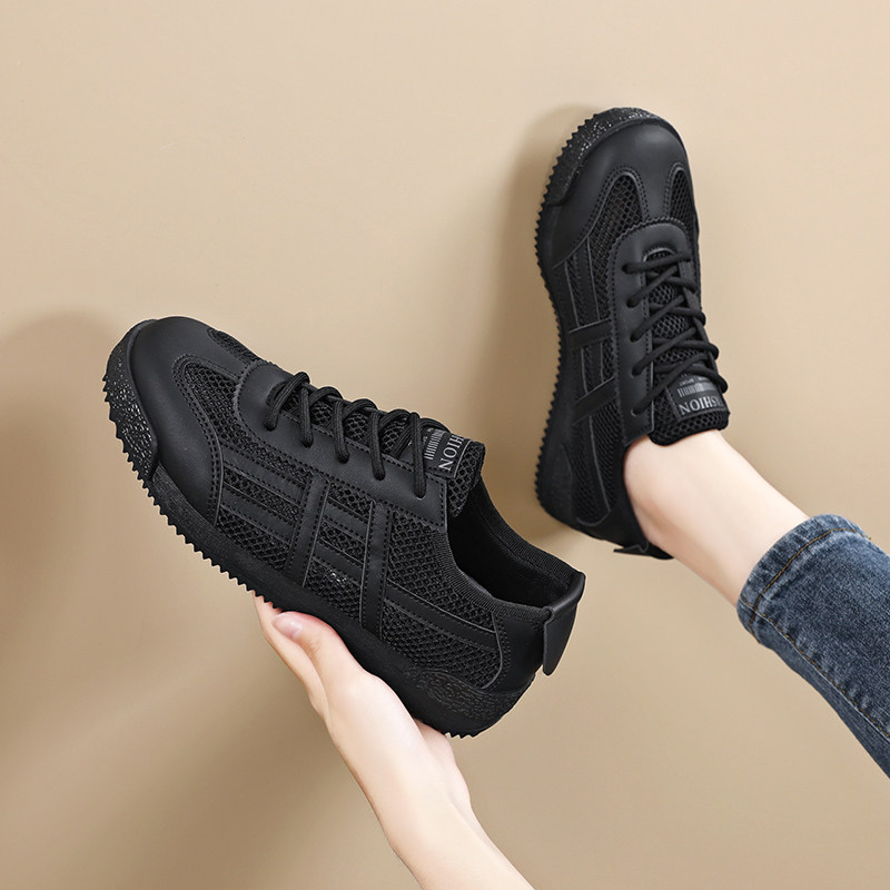 黑色运动鞋女大码41透气薄款网鞋2025新款夏季网面板鞋软底不累脚