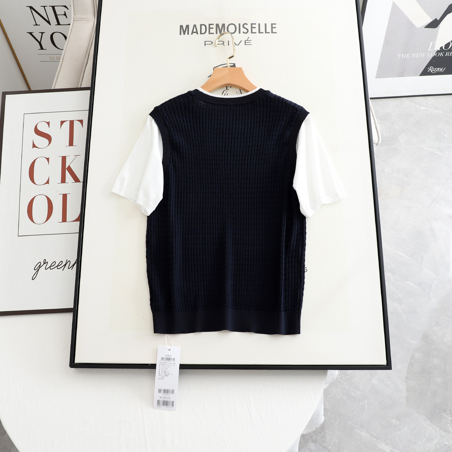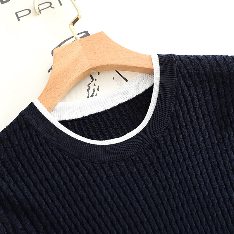 诗系の2026夏季新款时尚百搭气质显瘦假两件短袖套头针织衫女上衣