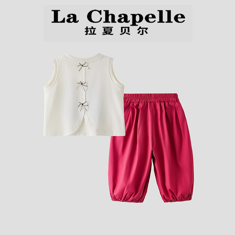 拉夏贝尔女童夏季套装2026新款儿童超好看薄款无袖背心上衣裤子潮