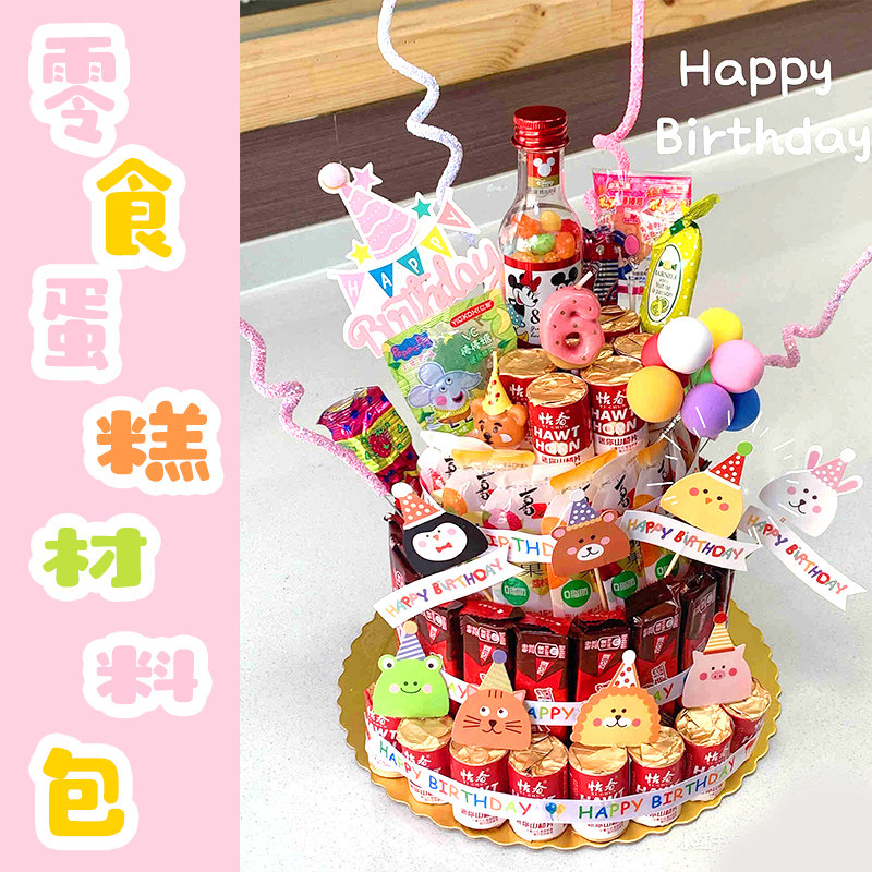 小红书儿童生日零食大礼包宝宝泡沫模型蛋糕礼物插件插牌布置装饰