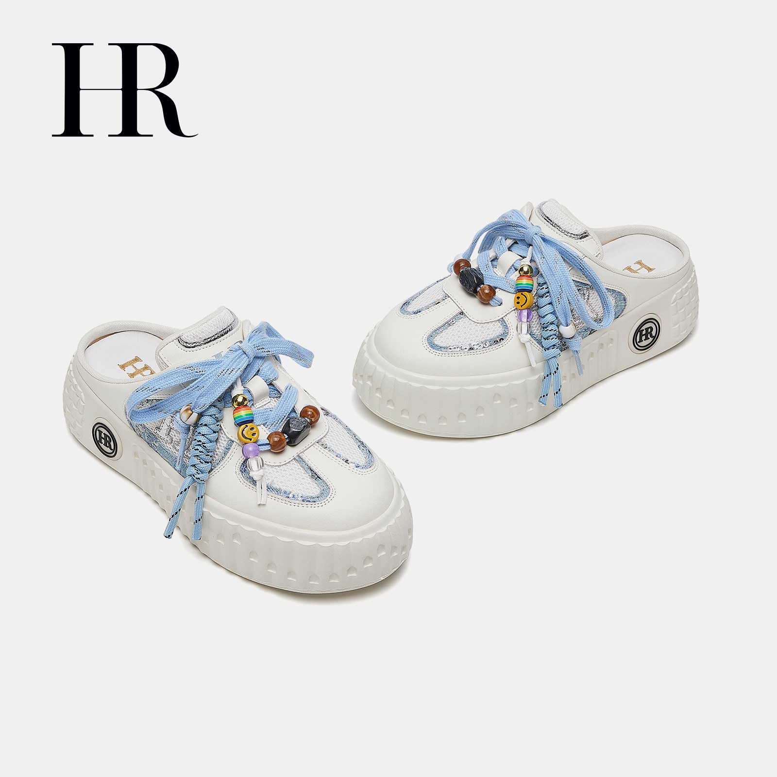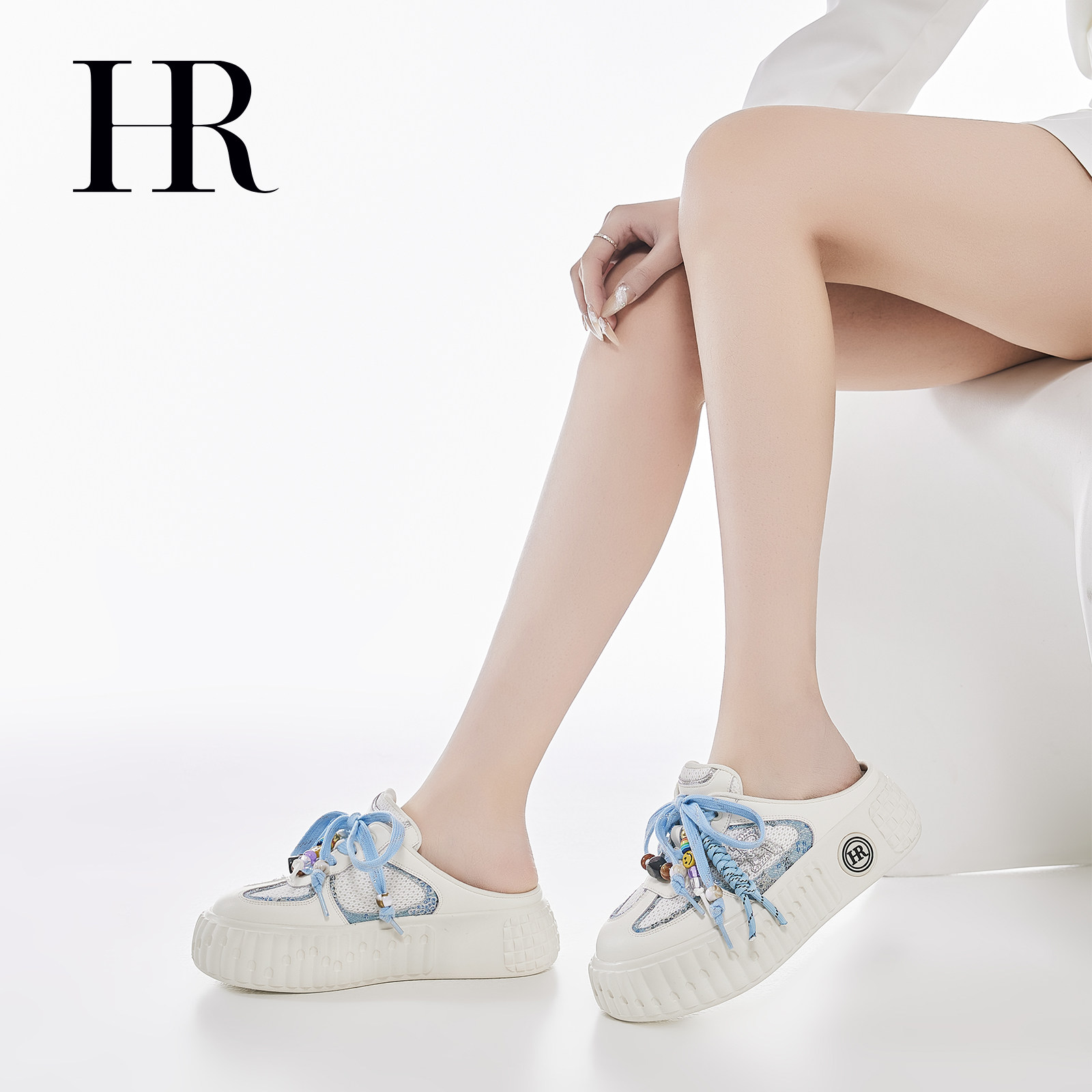 HR赫莲娜德训网面半拖2026夏季新款包头拖厚底孕妇女鞋休闲透气