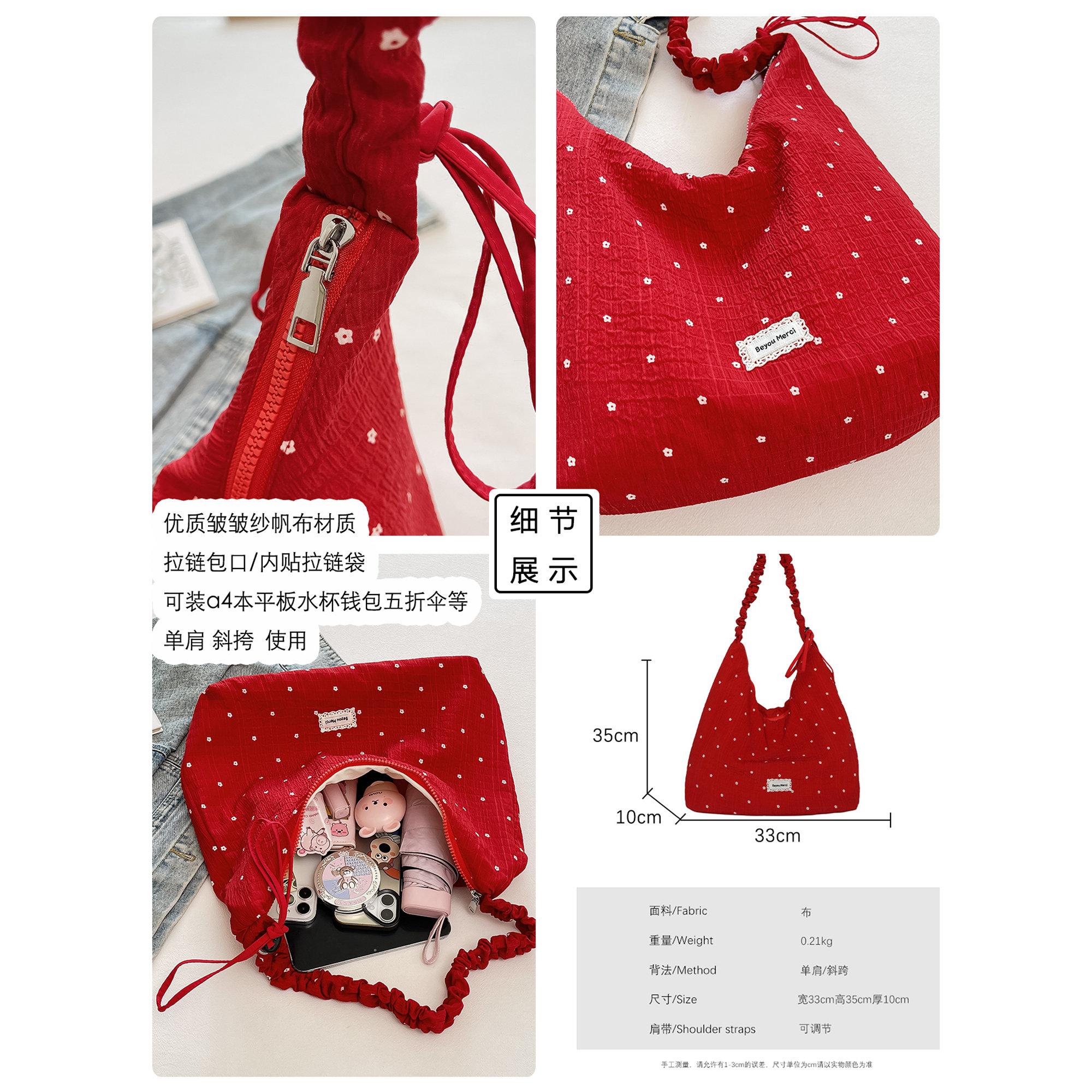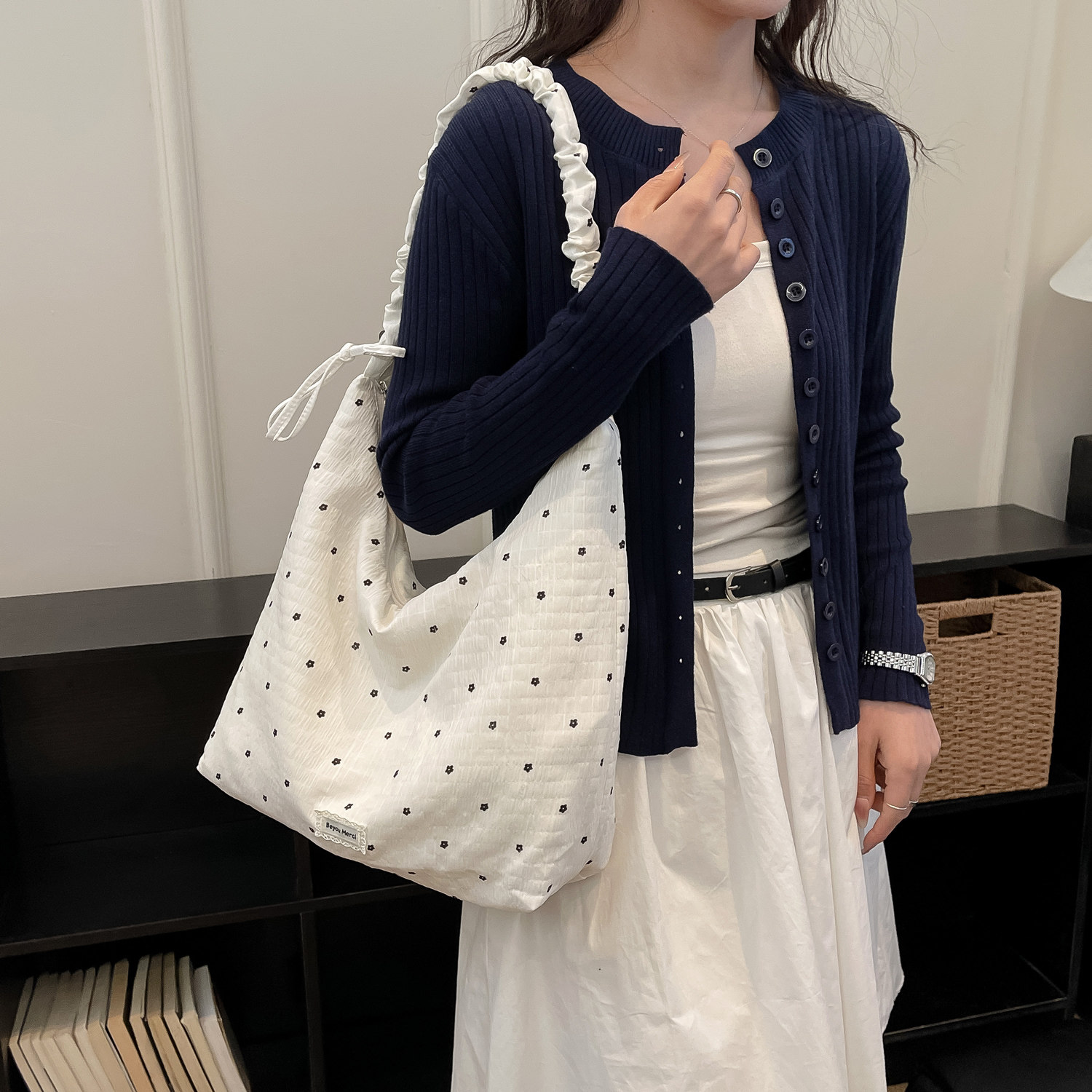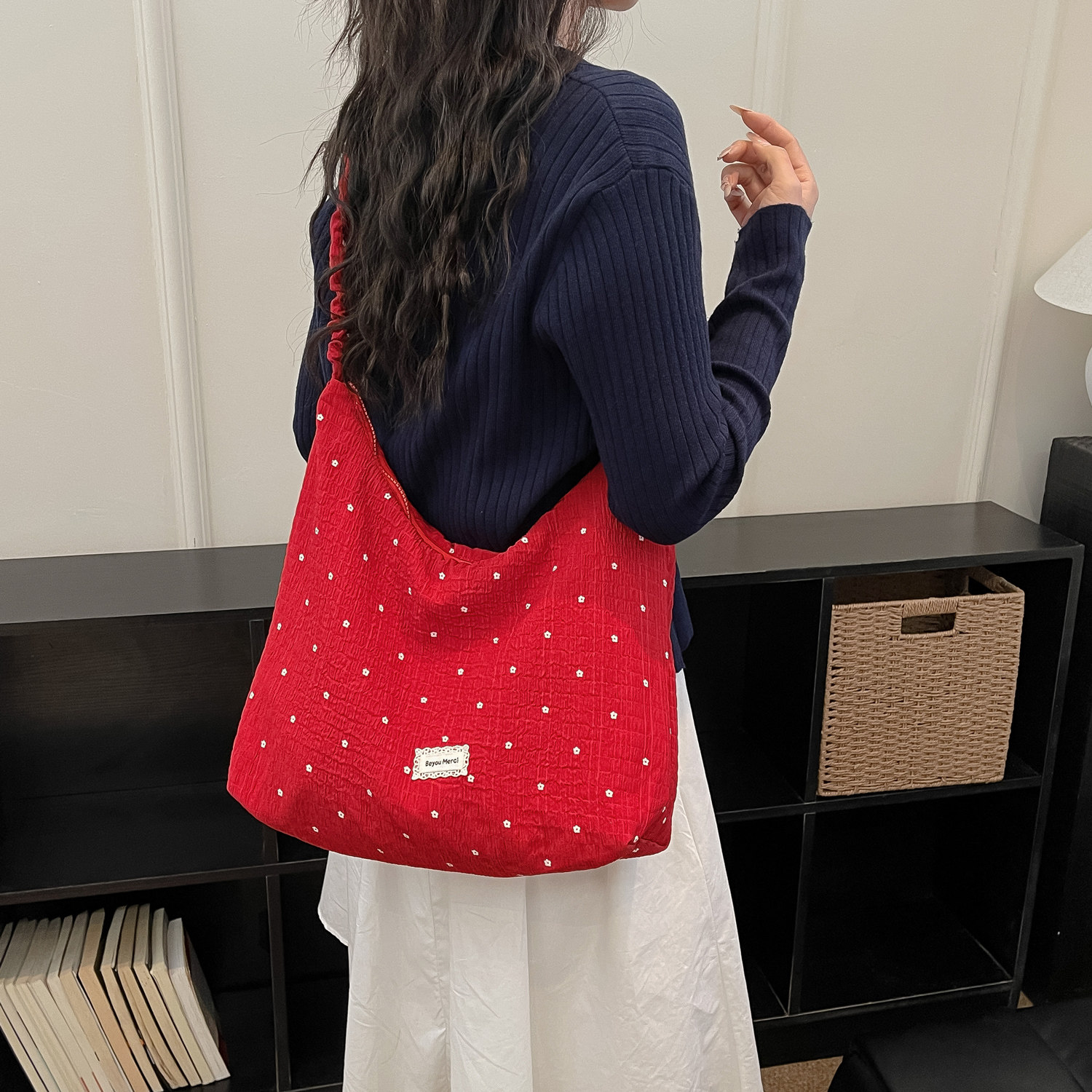 2026夏新款波点帆布包包女大容量带拉链上课通勤托特包小众单肩包