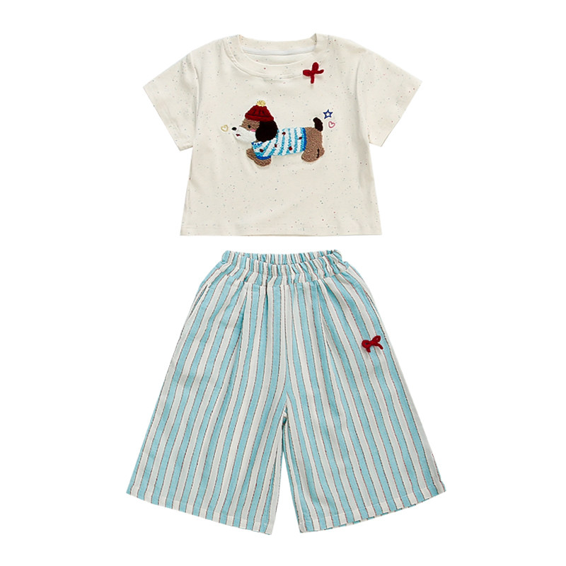 311线报网描述:网红炸街,韩系条纹阔腿裤短袖套装