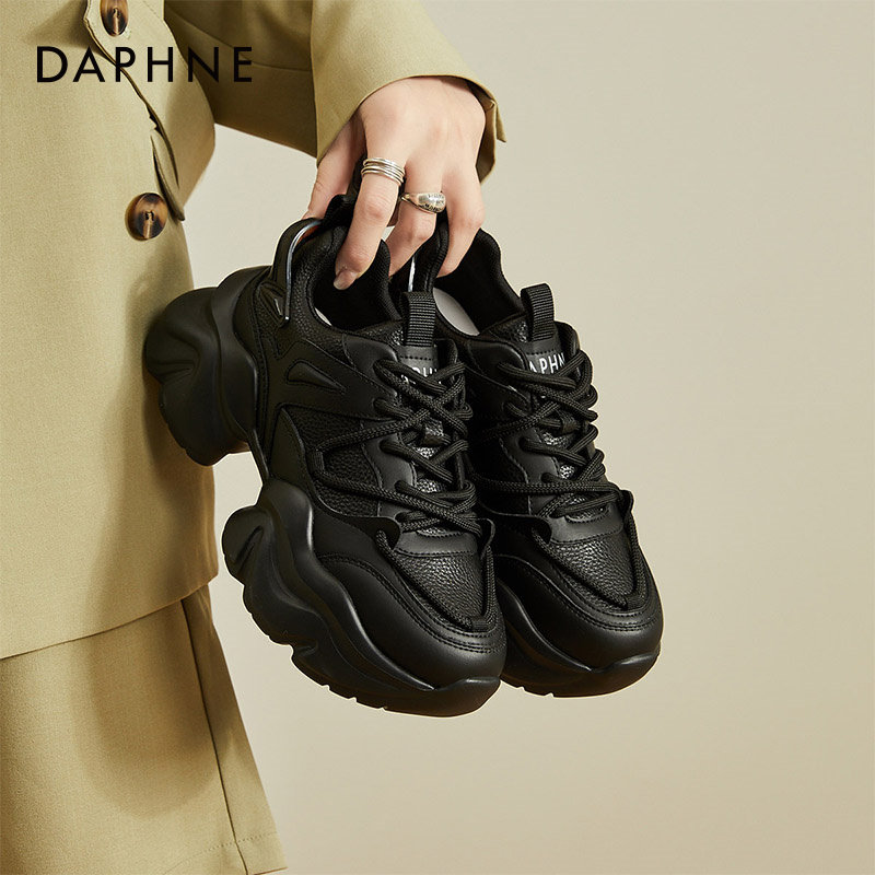 达芙妮黑色老爹鞋女款2026新款春秋厚底增高显脚小轻便休闲运动鞋