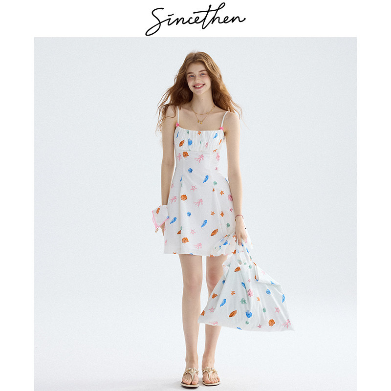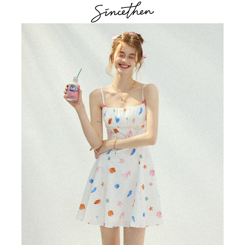 sincethen碎花连衣裙高级感吊带裙海边度假穿搭短裙小个子裙子女