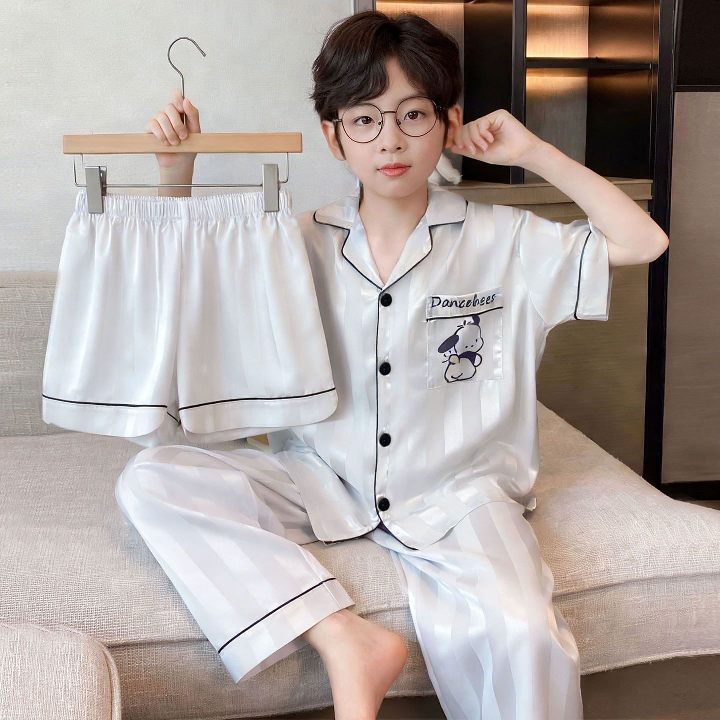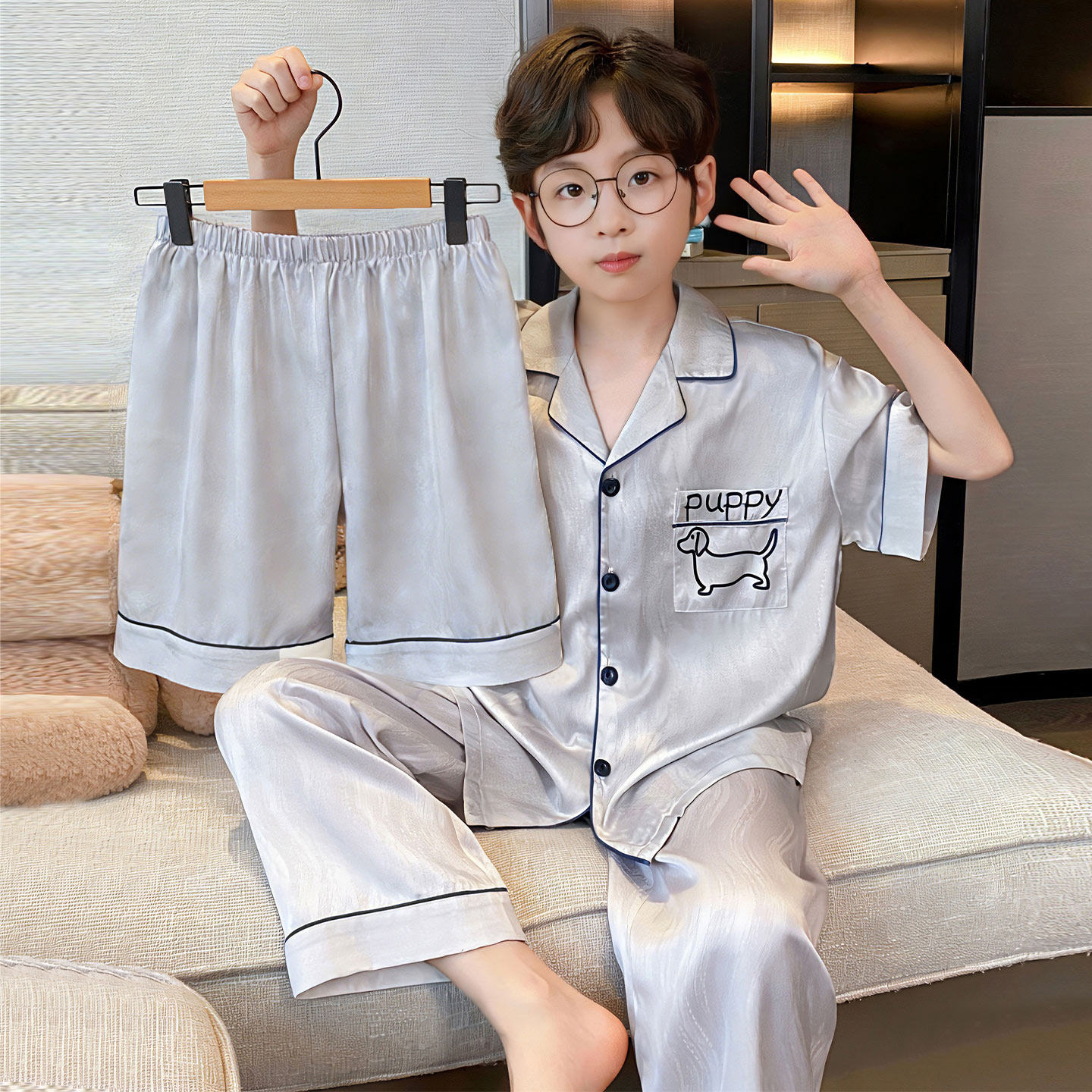 男童睡衣冰丝短袖薄款夏季中大童卡通小新儿童宝宝青少年家居服