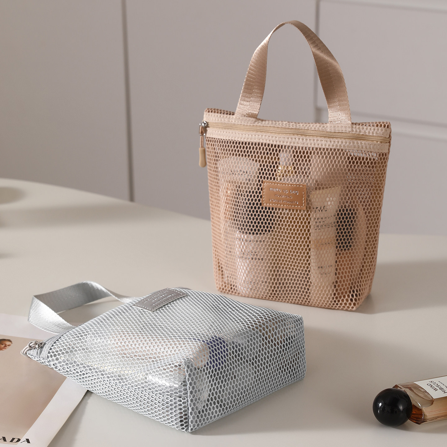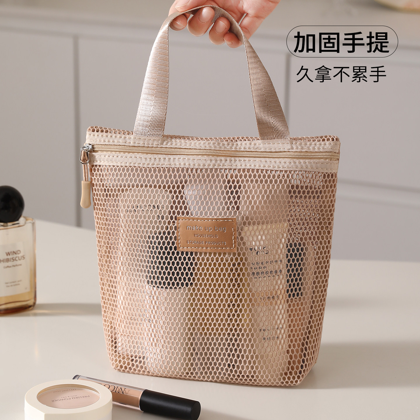 311线报网描述:化妆包女2026新款便携旅行包大容量双层网纱