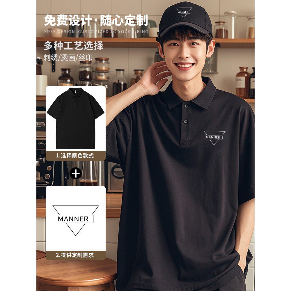 高级纯棉咖啡师工作服t恤定制餐饮咖啡奶茶店服务员专用翻领短袖