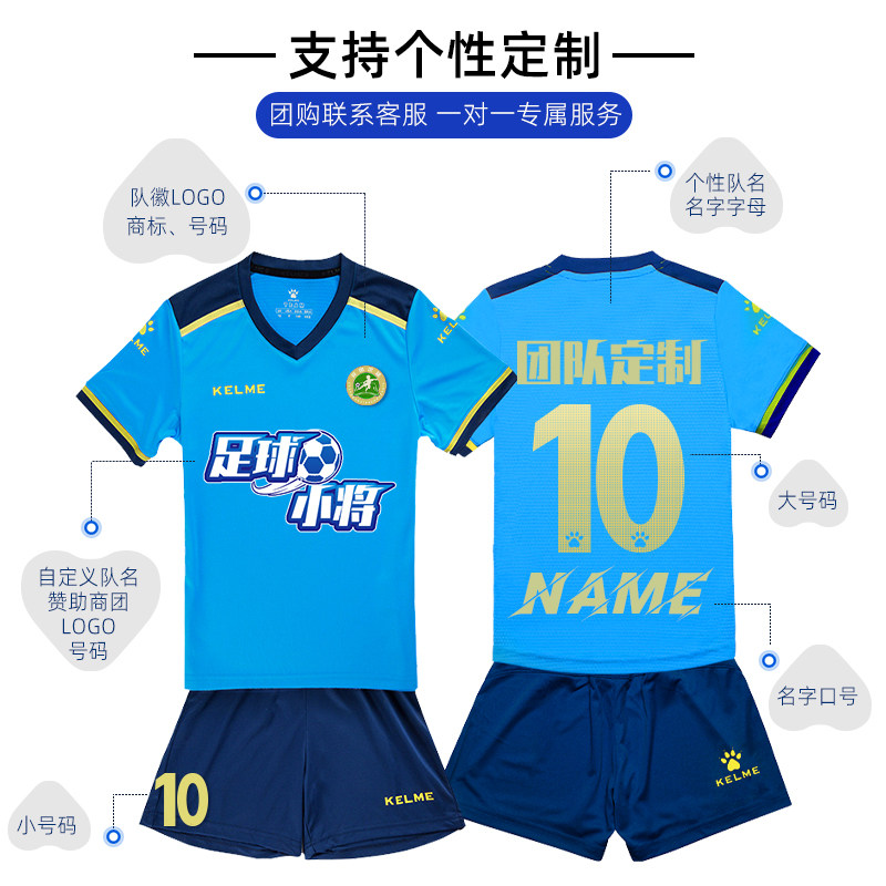 kelme卡尔美儿童足球服套装小学生球衣印字组队定制训练服男短袖