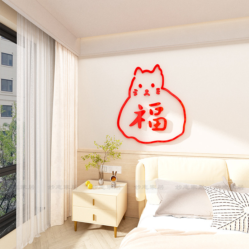 2024新过年装饰电视沙发背景墙面装饰挂饰自黏贴纸压克力3d立体