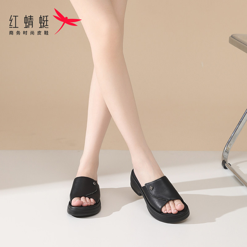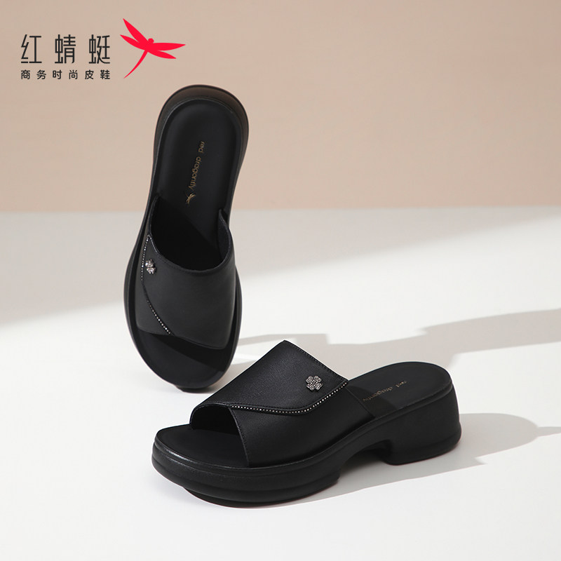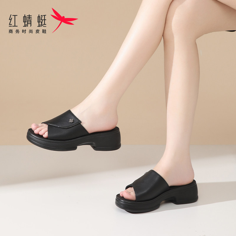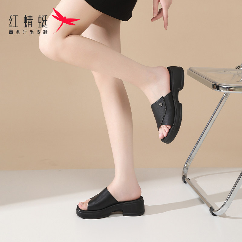 311线报网描述:红蜻蜓一字拖女士拖鞋女夏夏天凉鞋防滑真皮