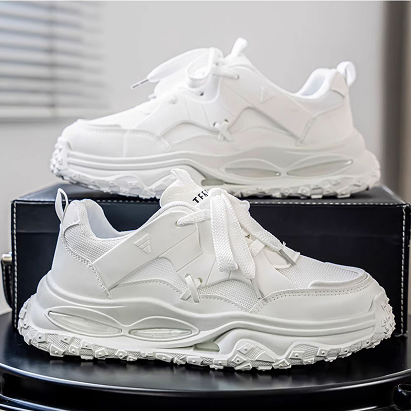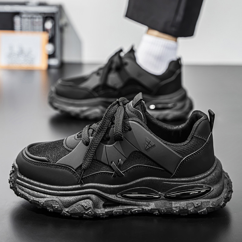 男鞋2025新款夏季休闲透气老爹鞋超火厚底气垫运动跑鞋黑色白色