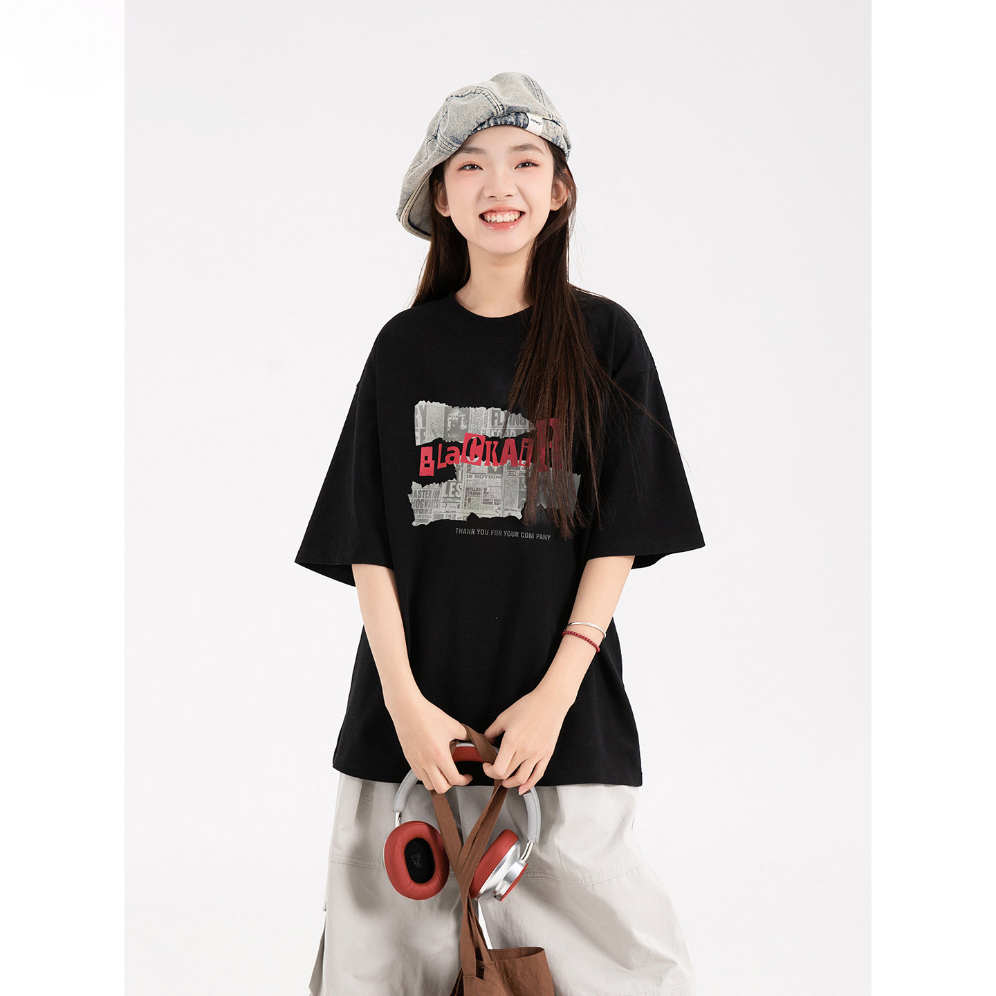 女大童印花t恤纯棉上衣夏季青少年男女孩美式休闲初高中学生短袖