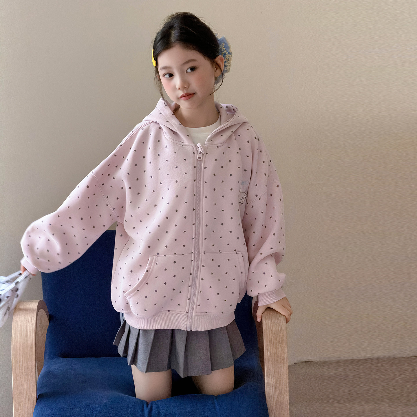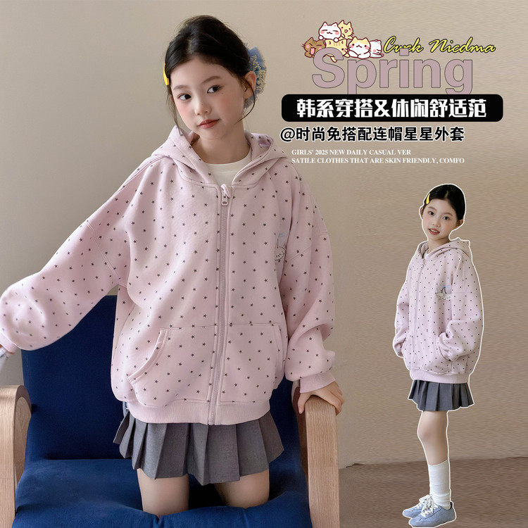 女童韩版星星外套2026新款连帽卫衣女孩春秋甜美风中大童拉链开衫