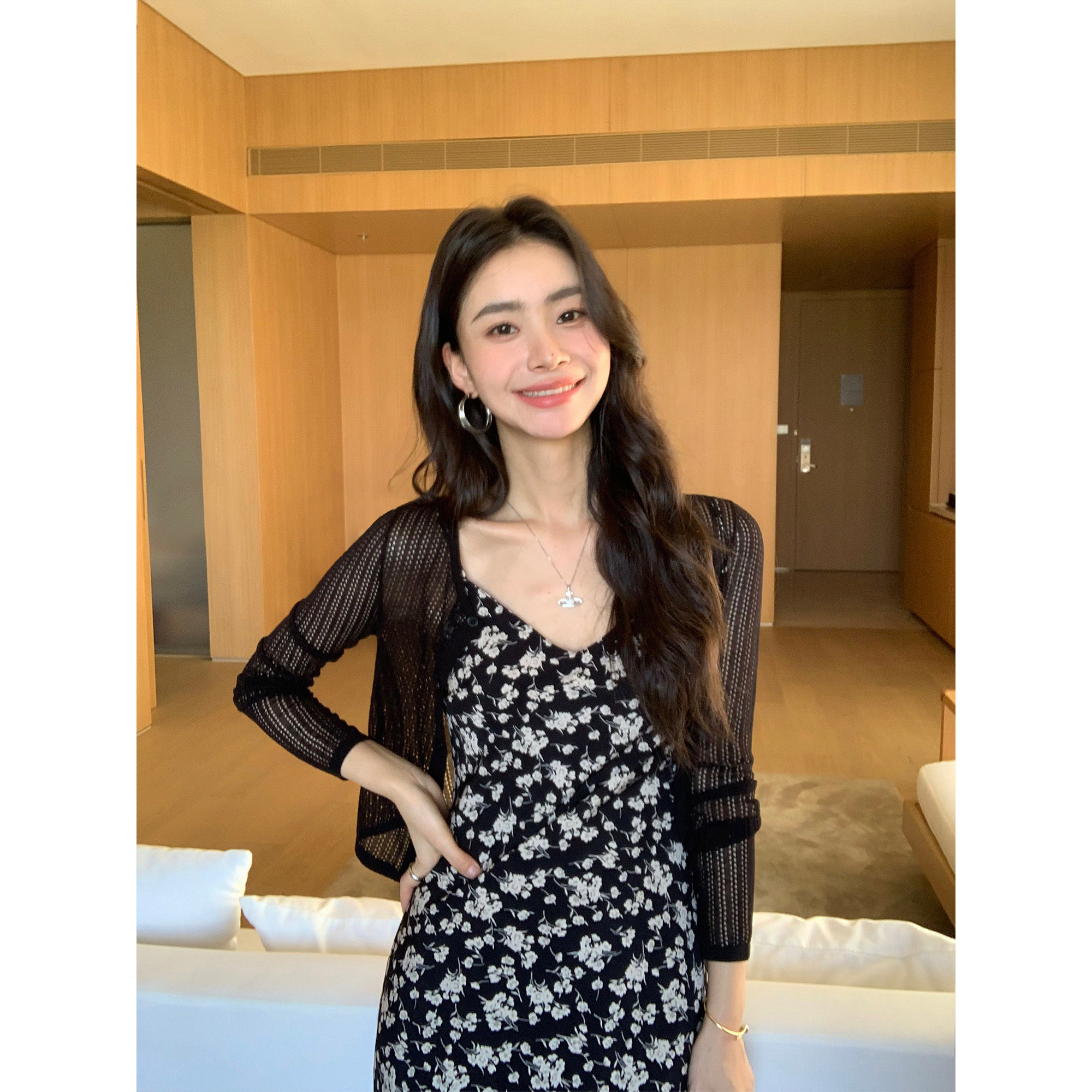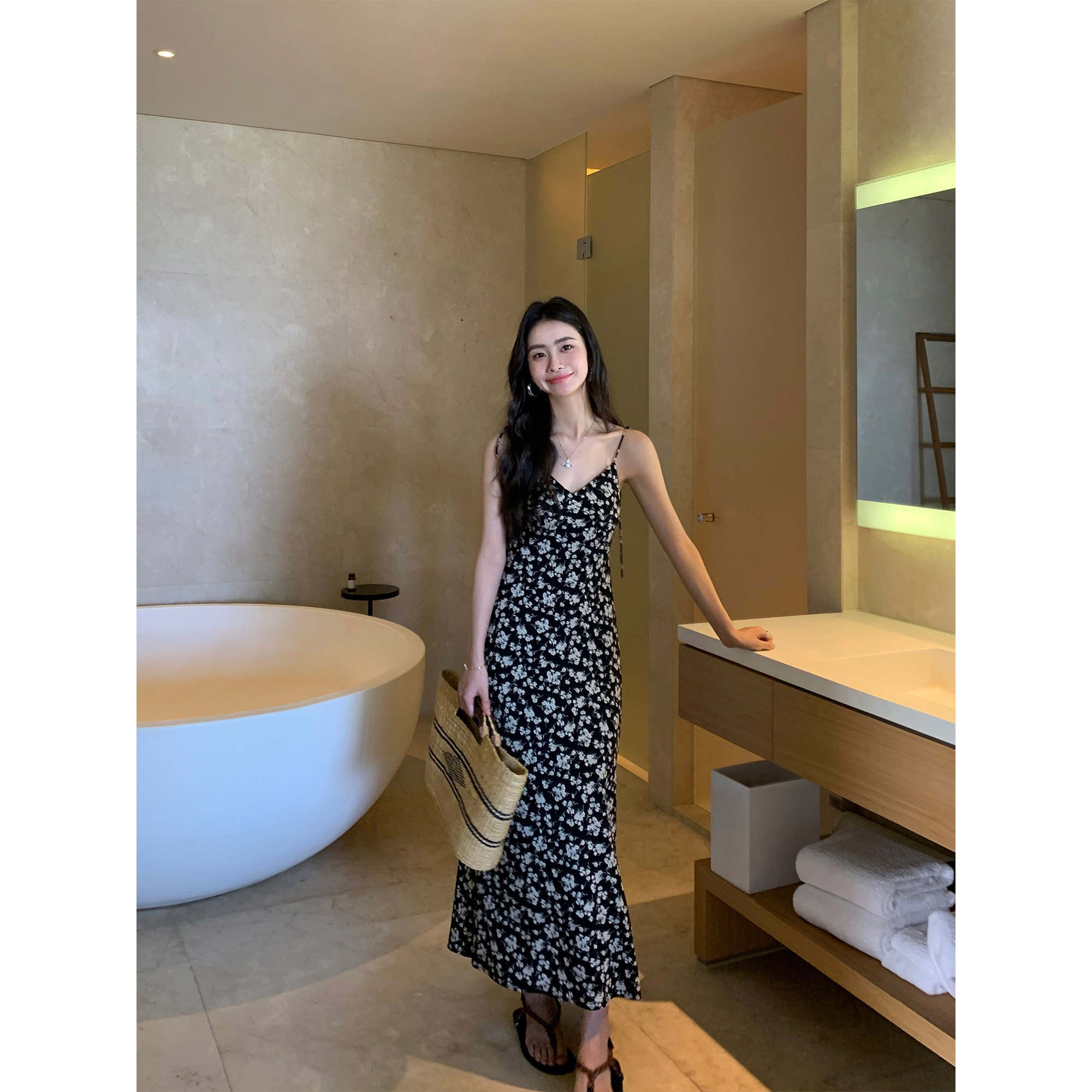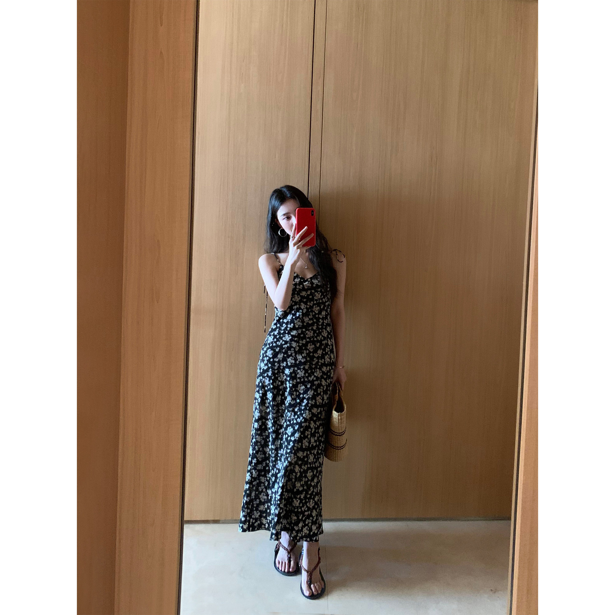 pusumede 【现货7.5折】v领吊带裙碎花连衣裙女度假风长裙