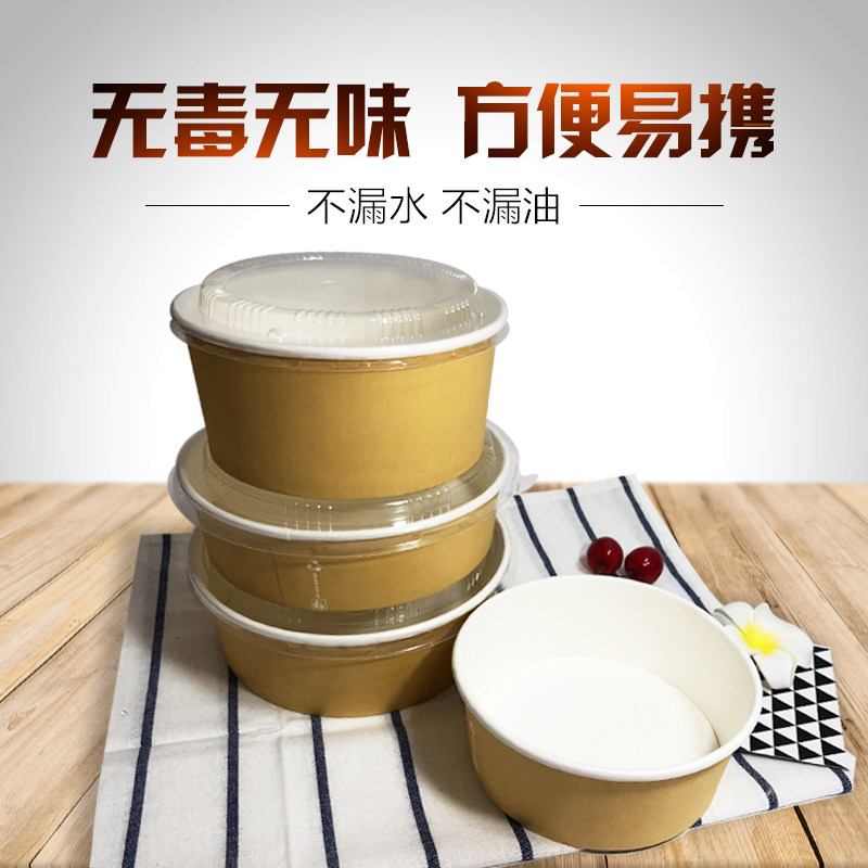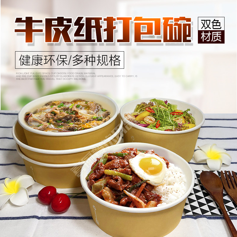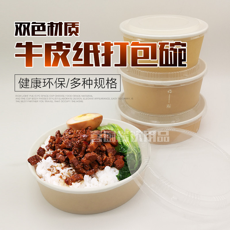 牛皮纸碗一次性外卖打包盒1000ml圆形带盖可降解餐盒卤肉饭沙拉盒
