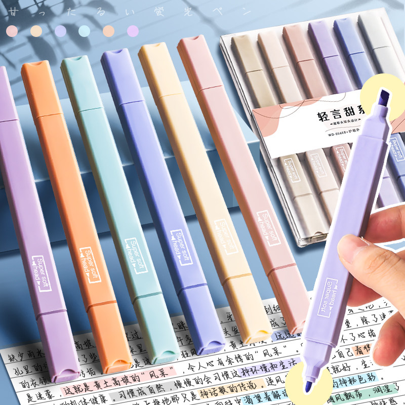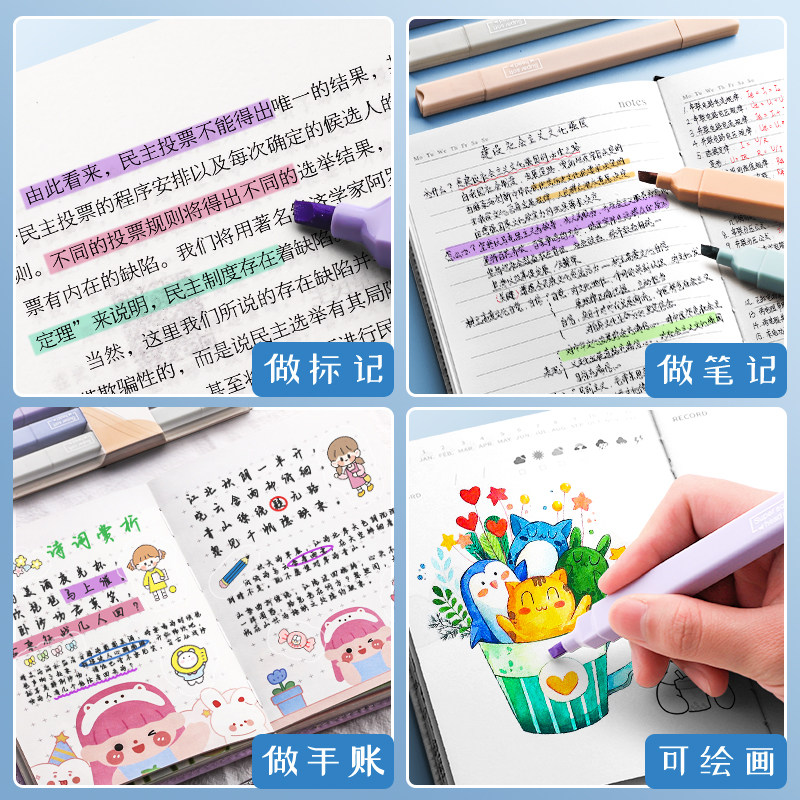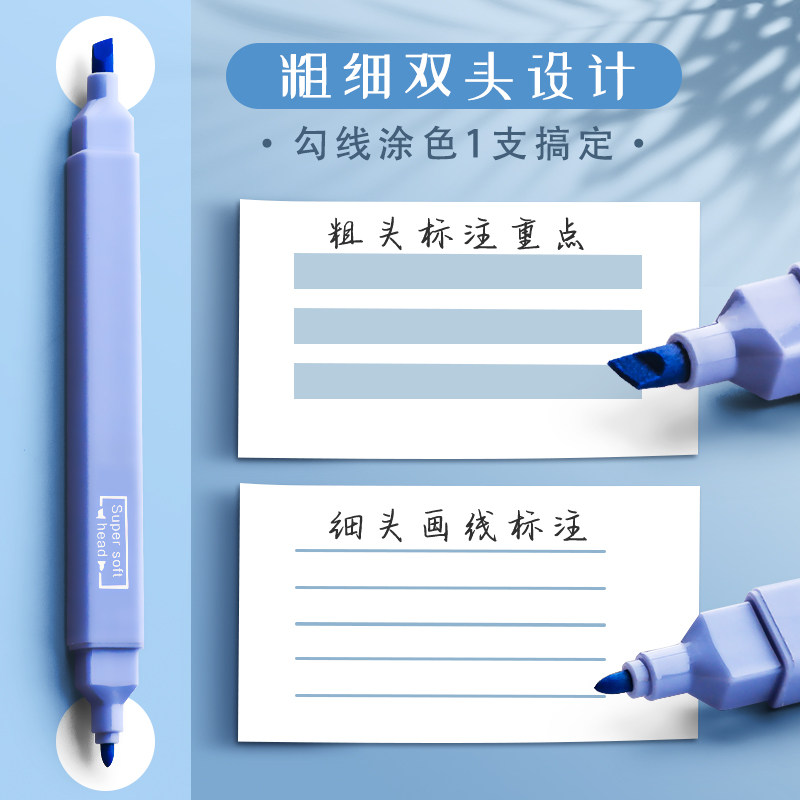 荧光笔双头荧光标记笔学生用记号笔彩色划重点手帐笔小学生专用初中生莫兰迪色高颜值ins风莹光笔做笔记文具