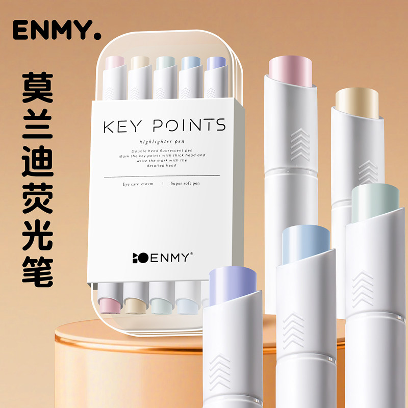 恩米双头荧光笔标记笔淡色系记号笔彩色划重点初高中生做笔记用高颜值ins风萤光小学生手账手抄报专用笔银光