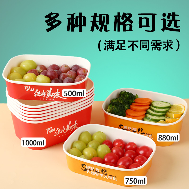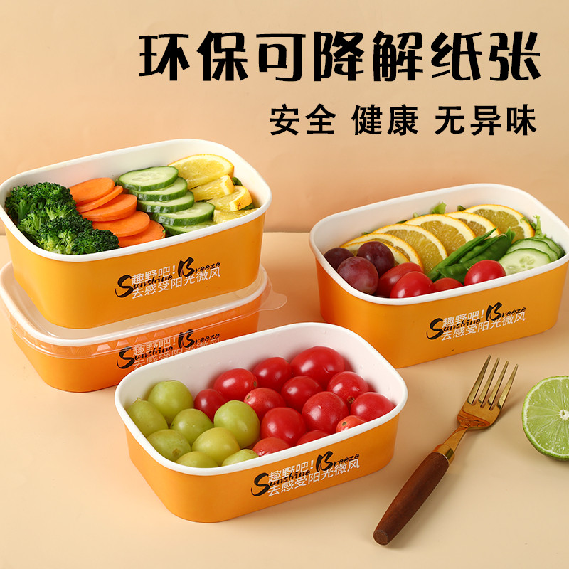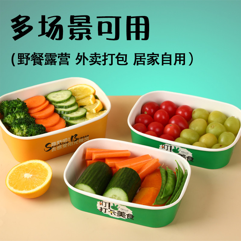 一次性餐盒长方形牛皮纸打包盒野餐饭盒水果沙拉碗外卖快餐便当盒