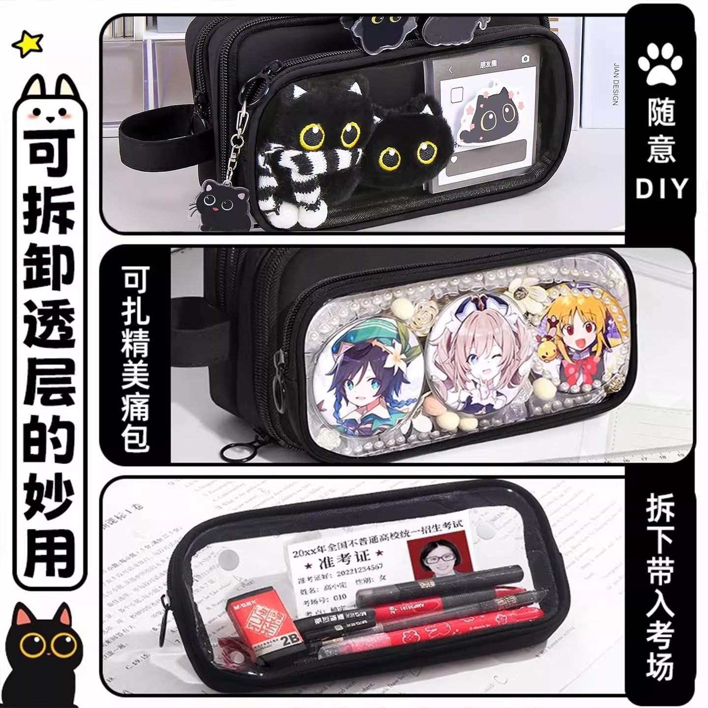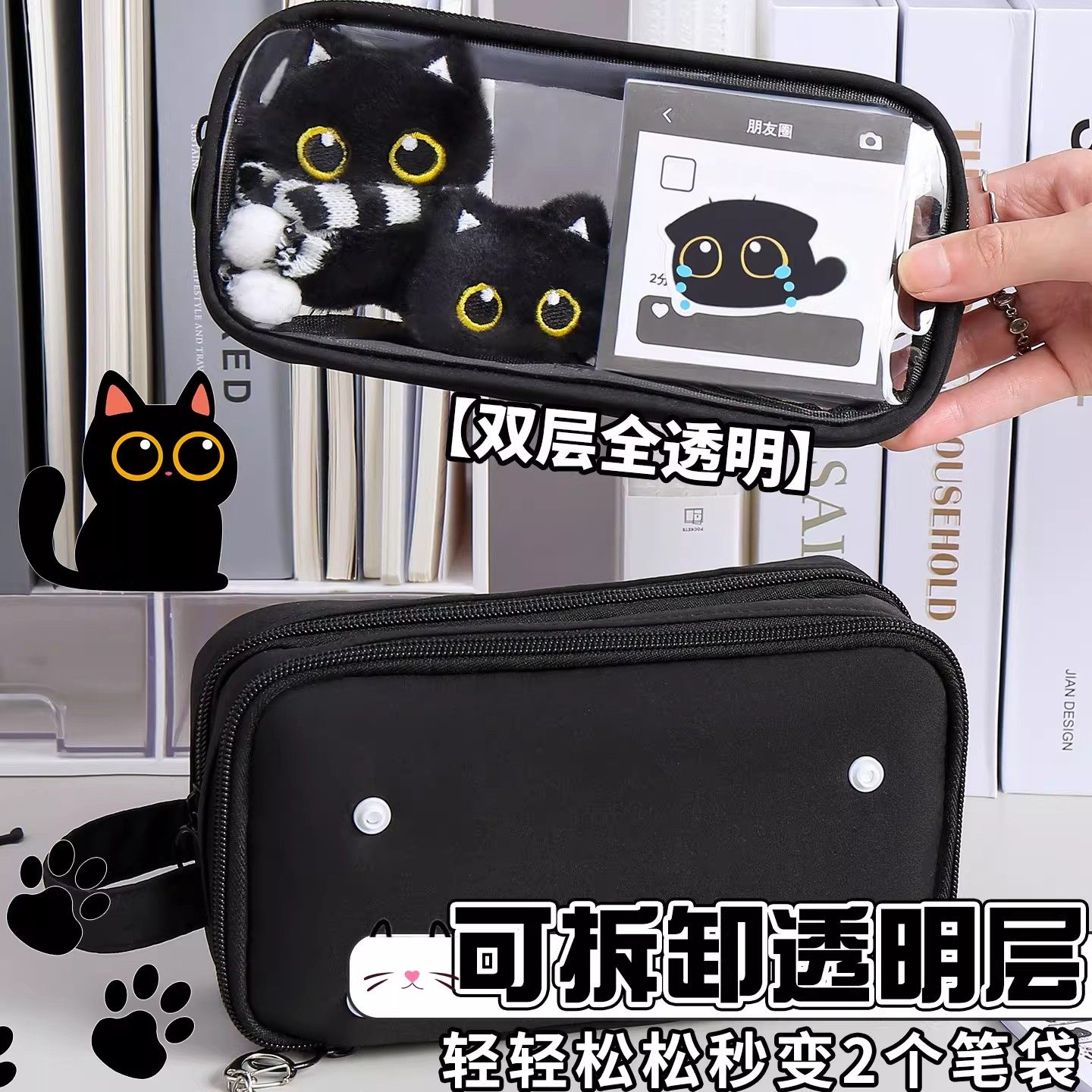 311线报网描述:围巾小猫~可拆卸透明笔袋女生2025新款高颜