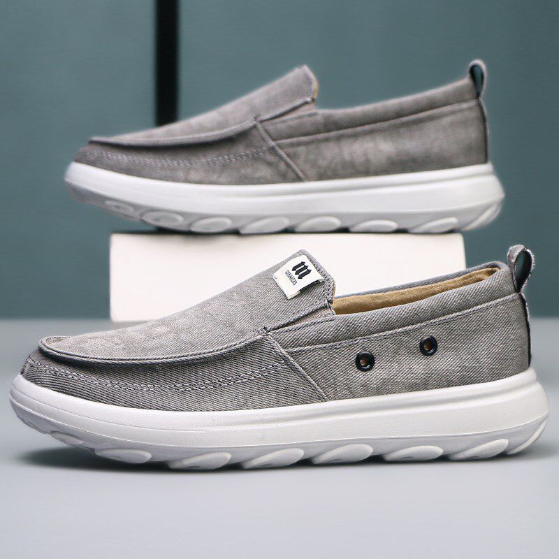 男士时尚休闲鞋一脚蹬帆布鞋不累脚男鞋软底防滑轻便舒适开车鞋子