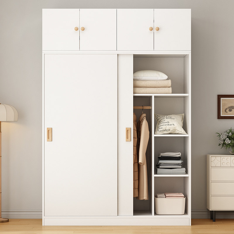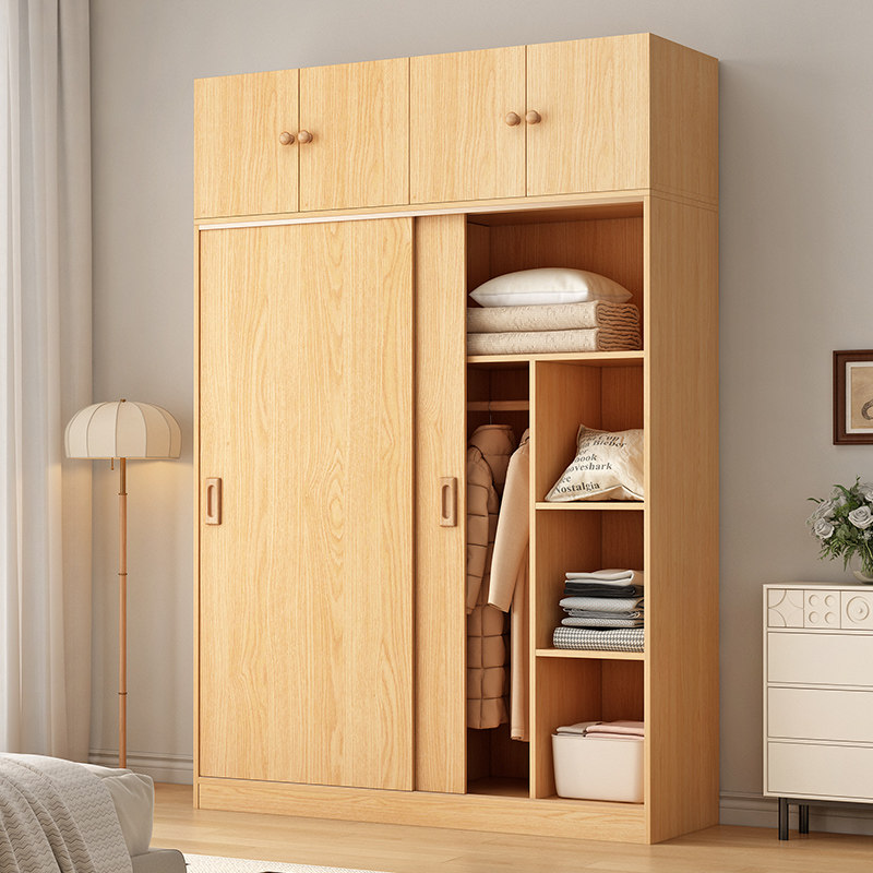 实木衣柜家用卧室原木风出租房用儿童定制移门储物推拉门收纳柜子
