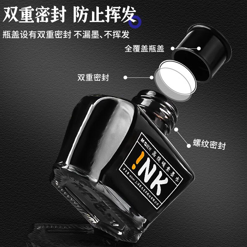 晨光墨水钢笔用墨水60ml瓶装高级碳素纯蓝黑色蓝黑墨水钢笔水黑墨