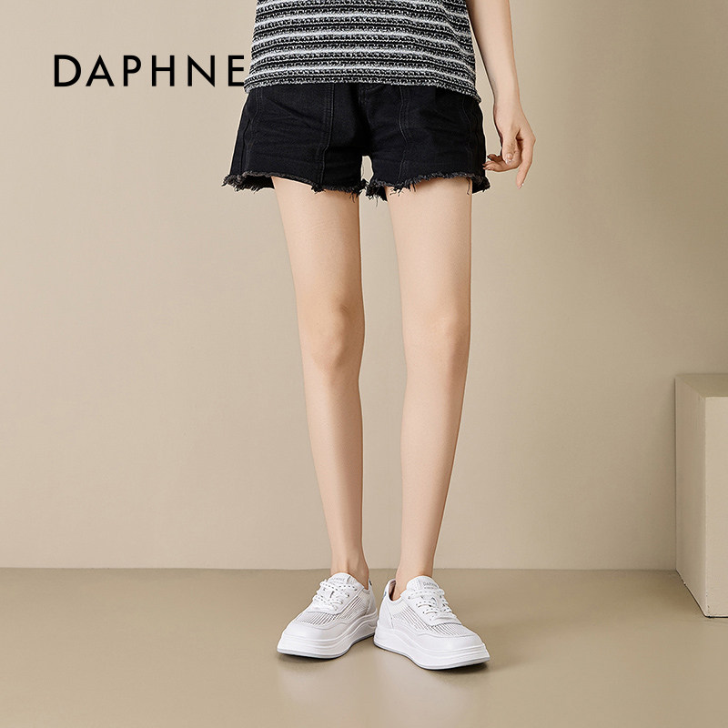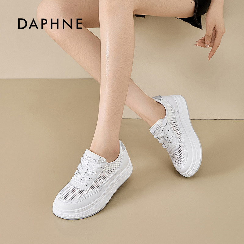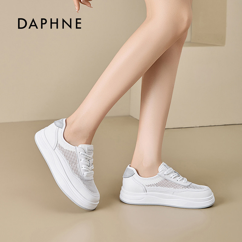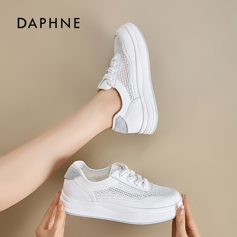 达芙妮网眼透气小白鞋女2025夏新款薄款网面镂空平底休闲板鞋网鞋