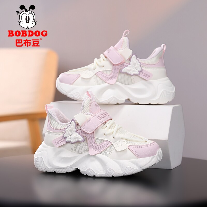 巴布豆童鞋女童老爹鞋春季2026新款透气网面儿童运动鞋女孩跑步鞋
