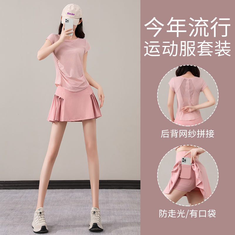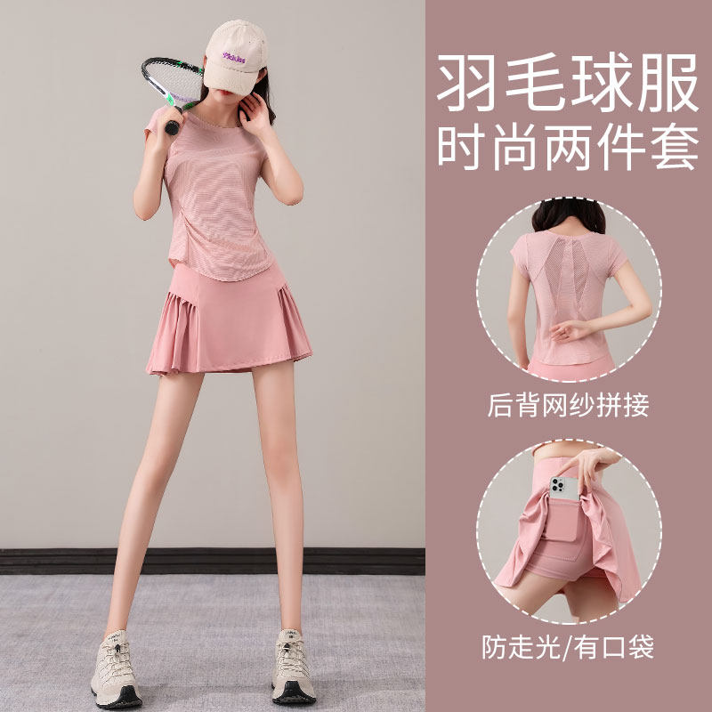 羽毛球服女夏季2026新款网球运动套装跑步速干短裙冰丝健身衣短袖