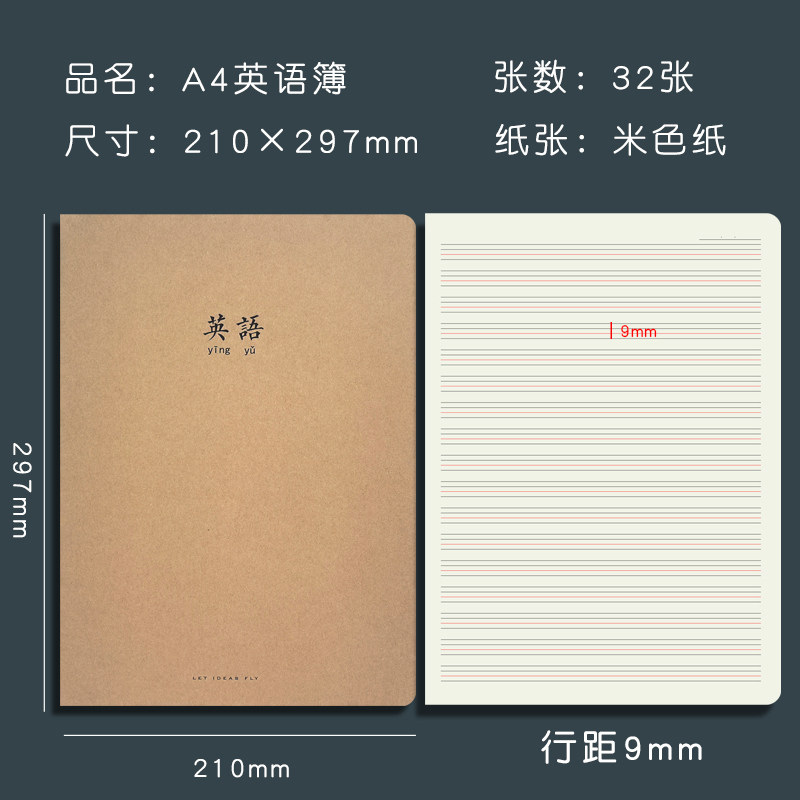 晨光a4英语本大号加厚牛皮纸封面四线三格英语簿初中生高中生大学生专用英文练习本子英语抄写作业本子