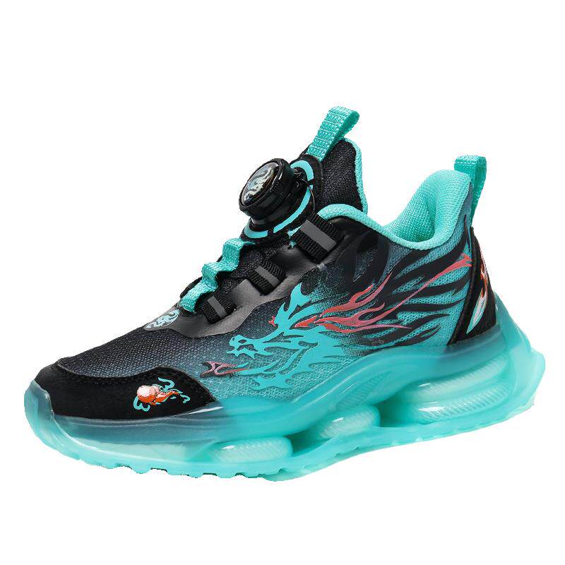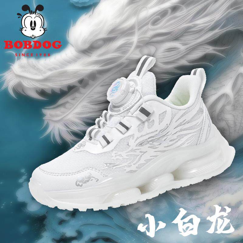 巴布豆男童鞋2025新款夏季透气网面鞋中大童单网旋转纽扣运动鞋子