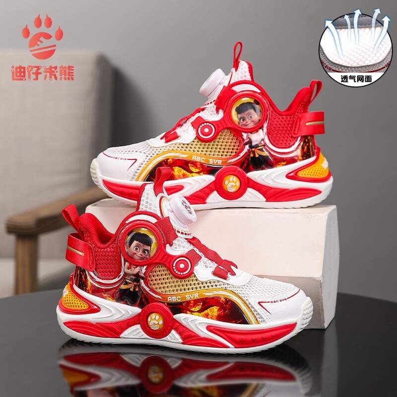 哪吒篮球鞋2026夏季新款男童鞋子网面透气儿童轻便软底运动鞋防滑