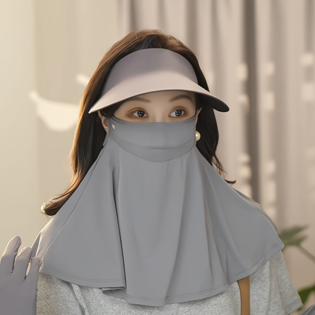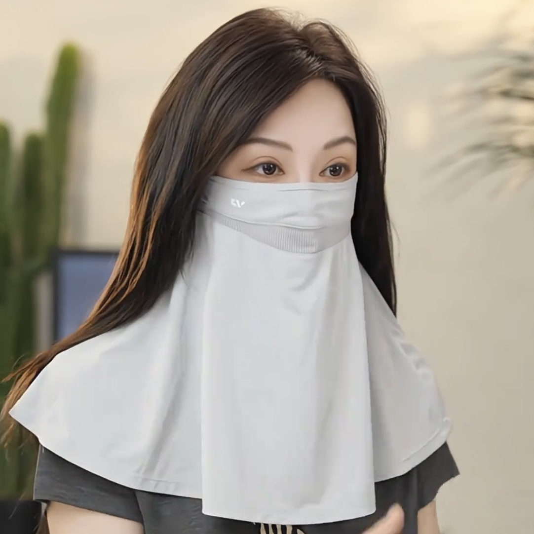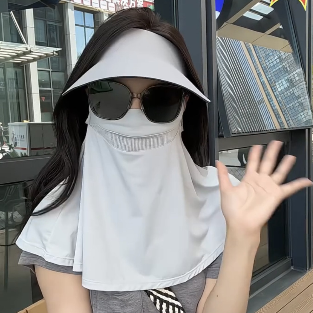 防晒口罩女护颈一体夏季遮脖子透气防紫外线冰丝防尘灰色遮阳面罩