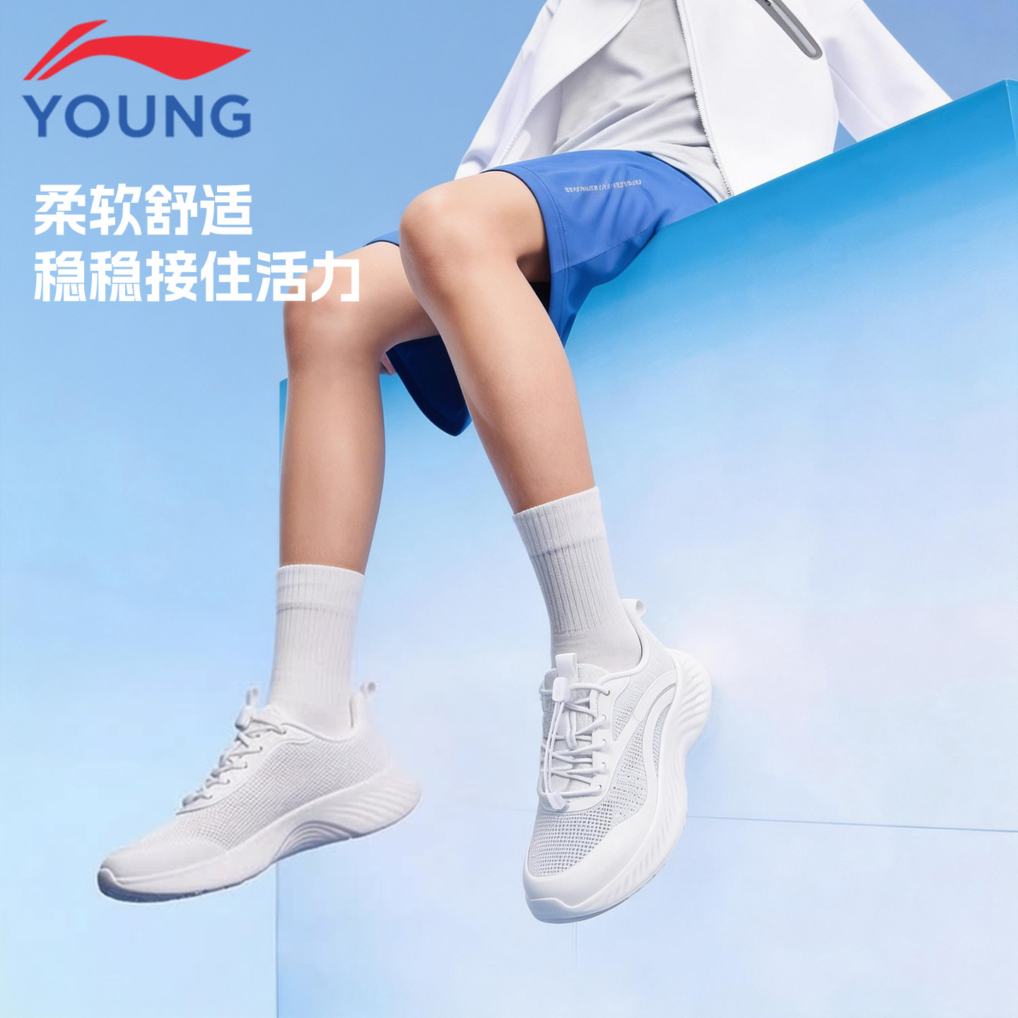 李宁儿童运动鞋男大童2026新款春季女童透气网面跑步鞋学生小白鞋
