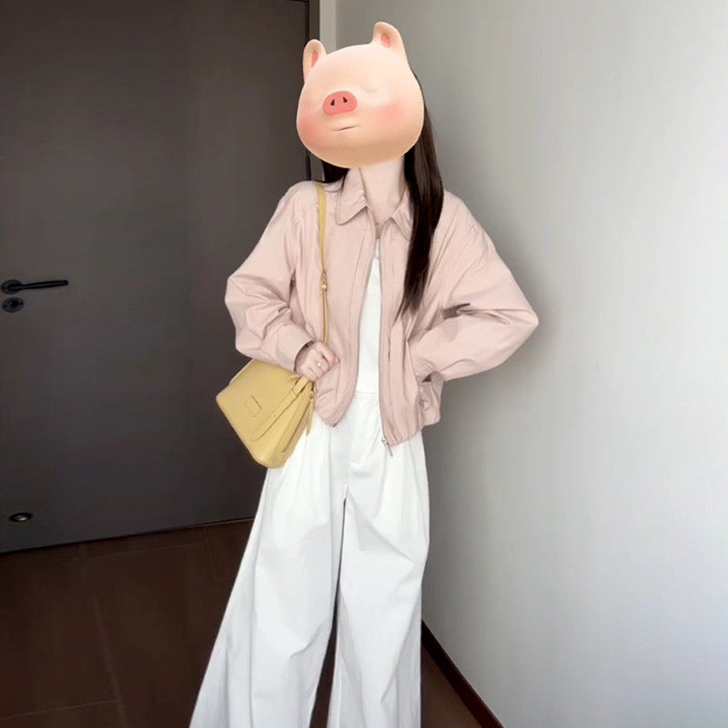 小个子粉色夹克外套女款春2025新款高级感设计感小众韩系短款上衣