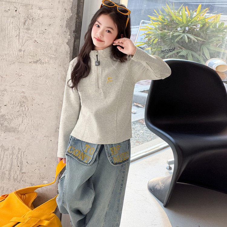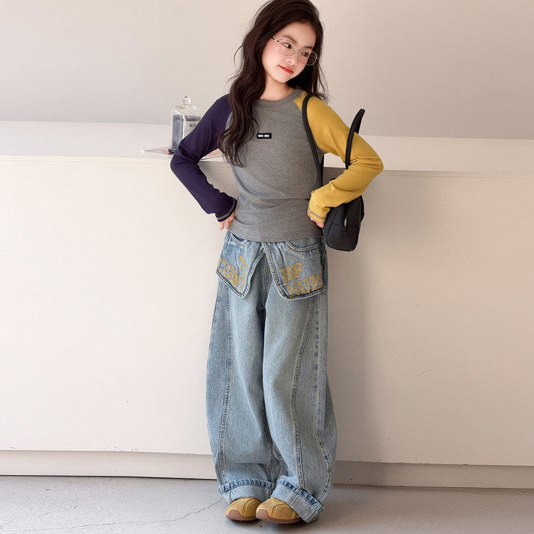 女童春装套装女大童裙裤牛仔裤两件套小女孩T恤长袖春装时髦洋气