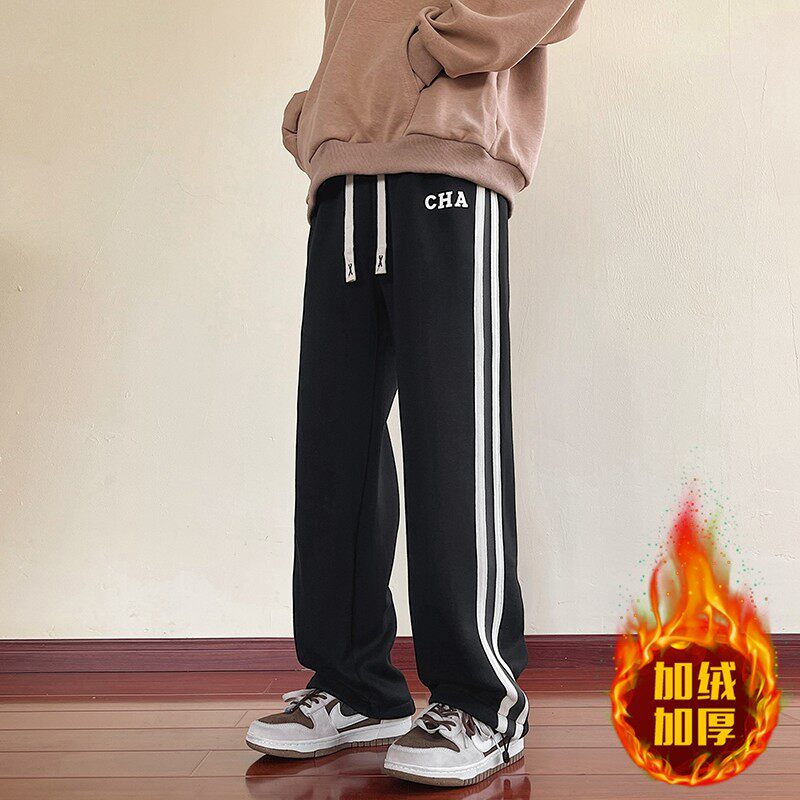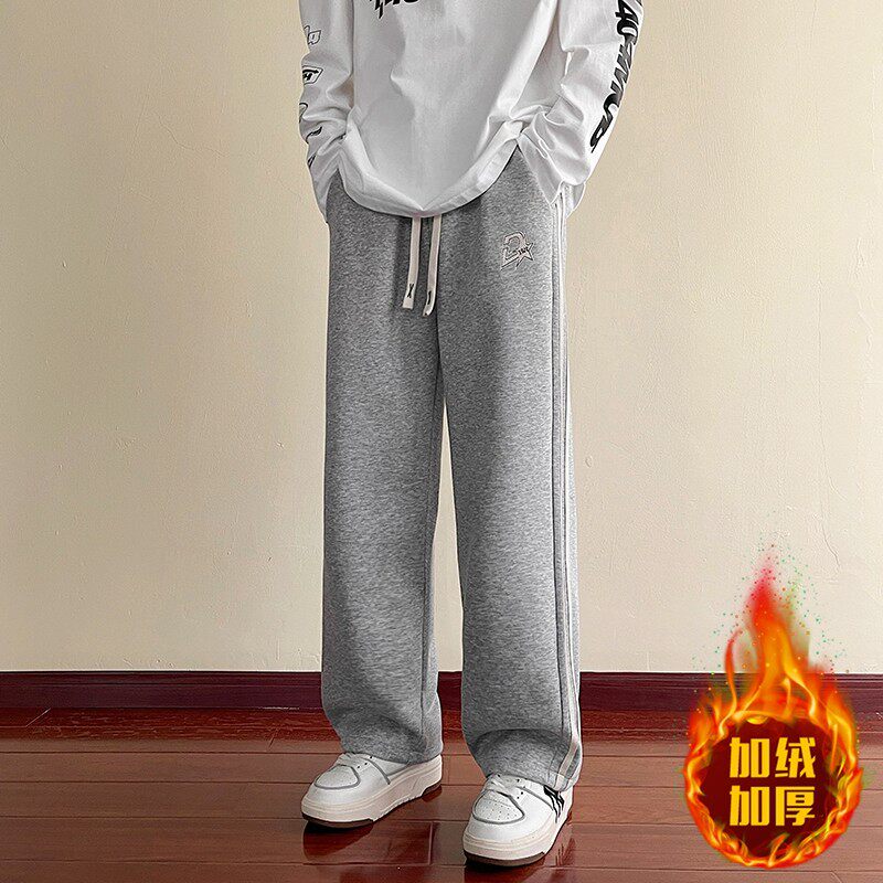 秋冬季青少年男裤子2025新款潮牌高中初中学生宽松加绒加厚运动裤