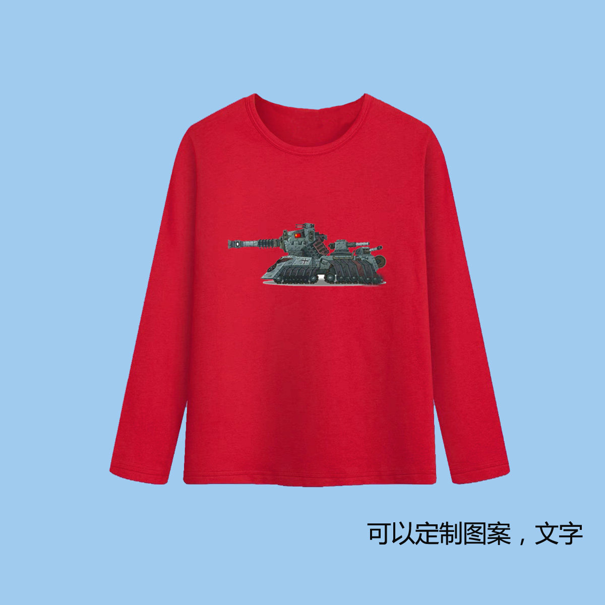 坦克战车迷图案纯棉T恤青少年男女孩儿童装宝宝长袖亲子装上衣服6