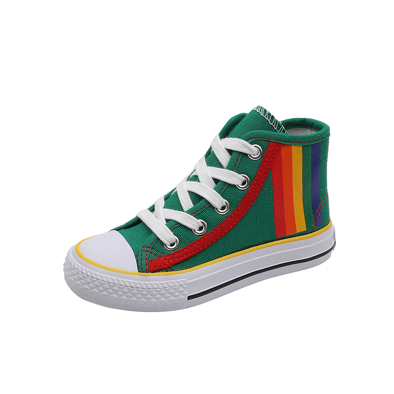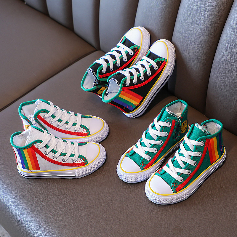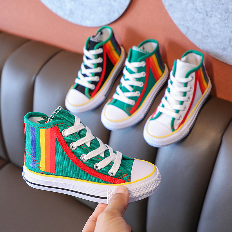儿童高帮魔术贴帆布鞋2026年春款新款女童鞋韩版彩虹时尚男童板鞋