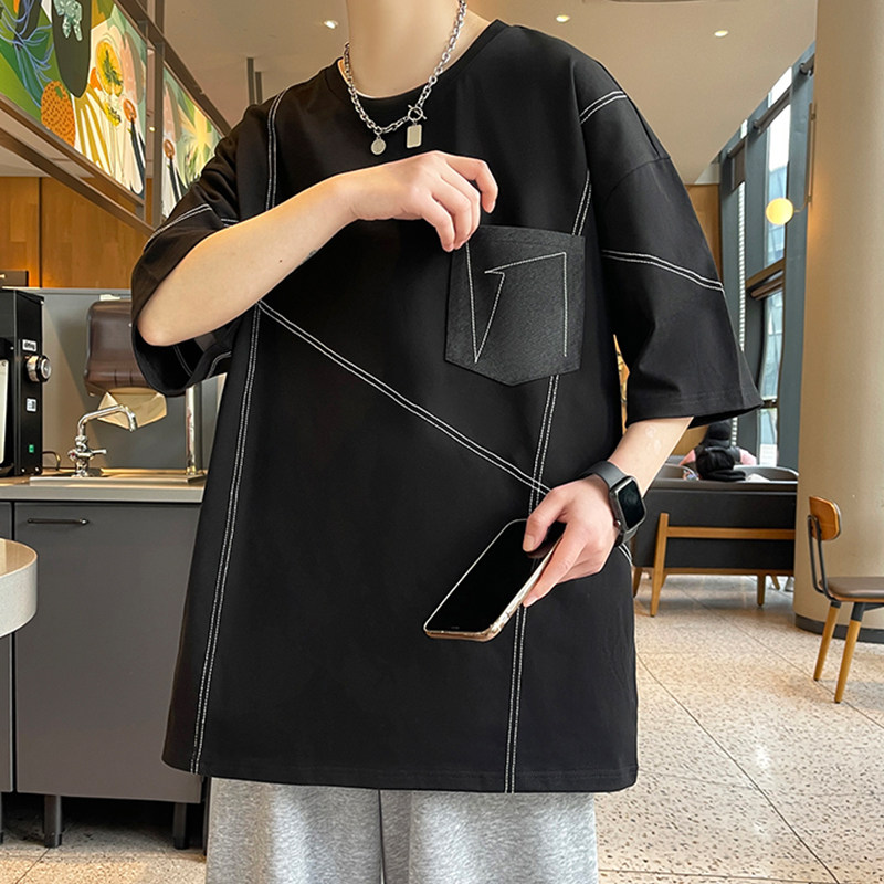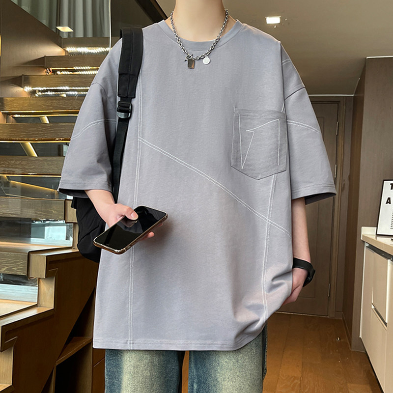 纯棉夏季新款短袖t恤男孩15岁初高中学生13宽松半袖大童男装上衣