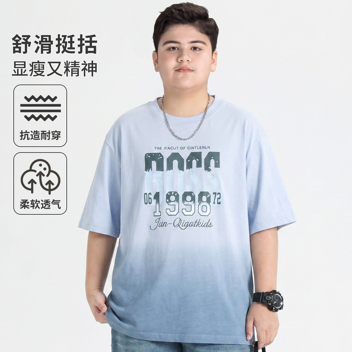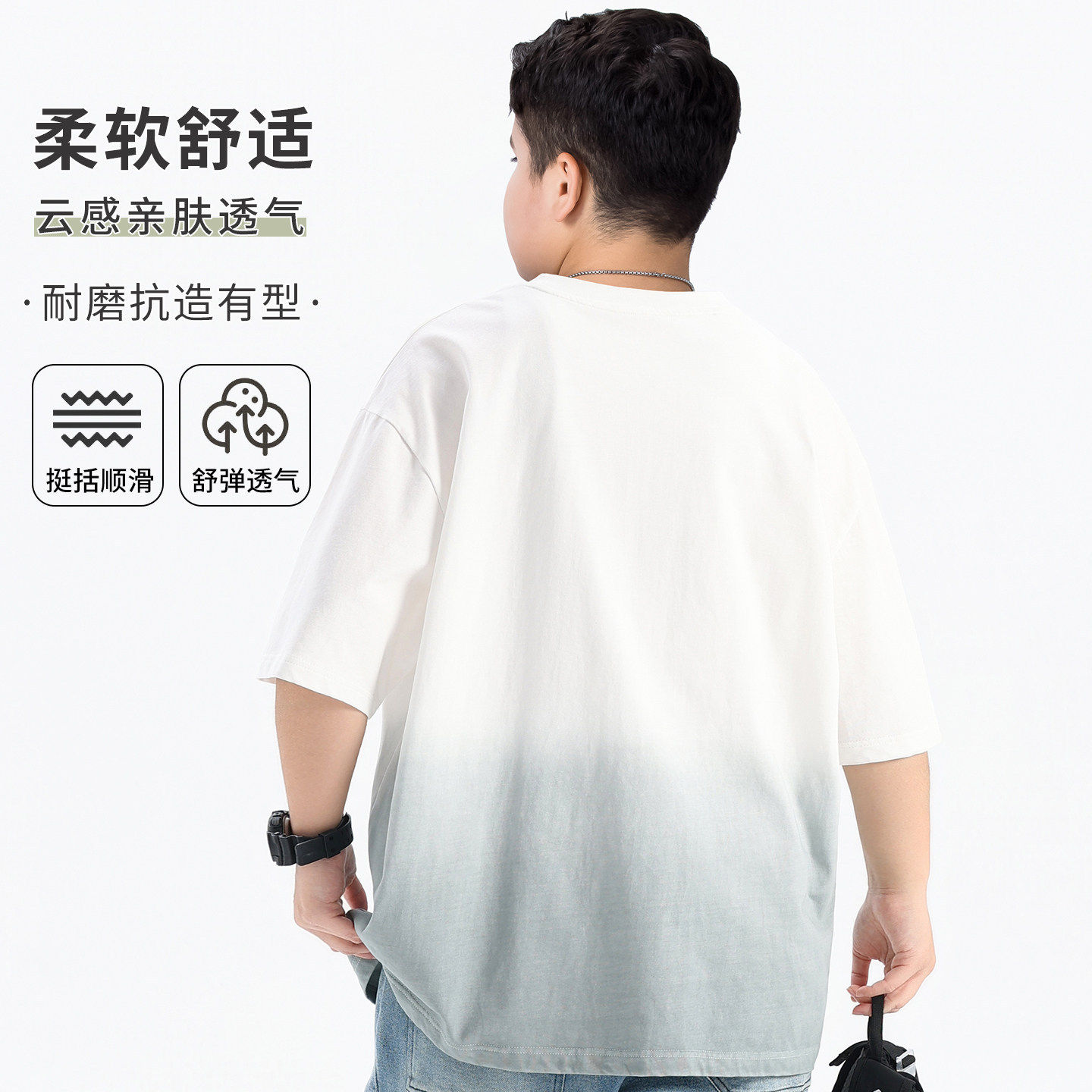青少年短袖T恤美式洋气男初中学生宽松大码半袖帅气男生高品质潮t