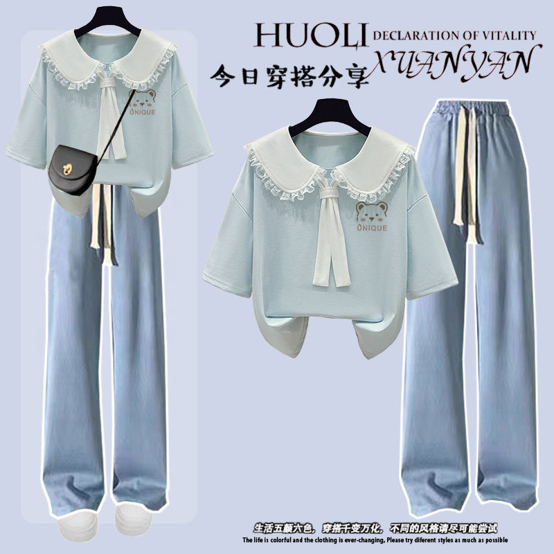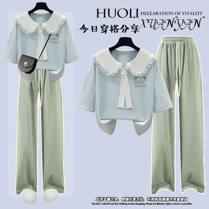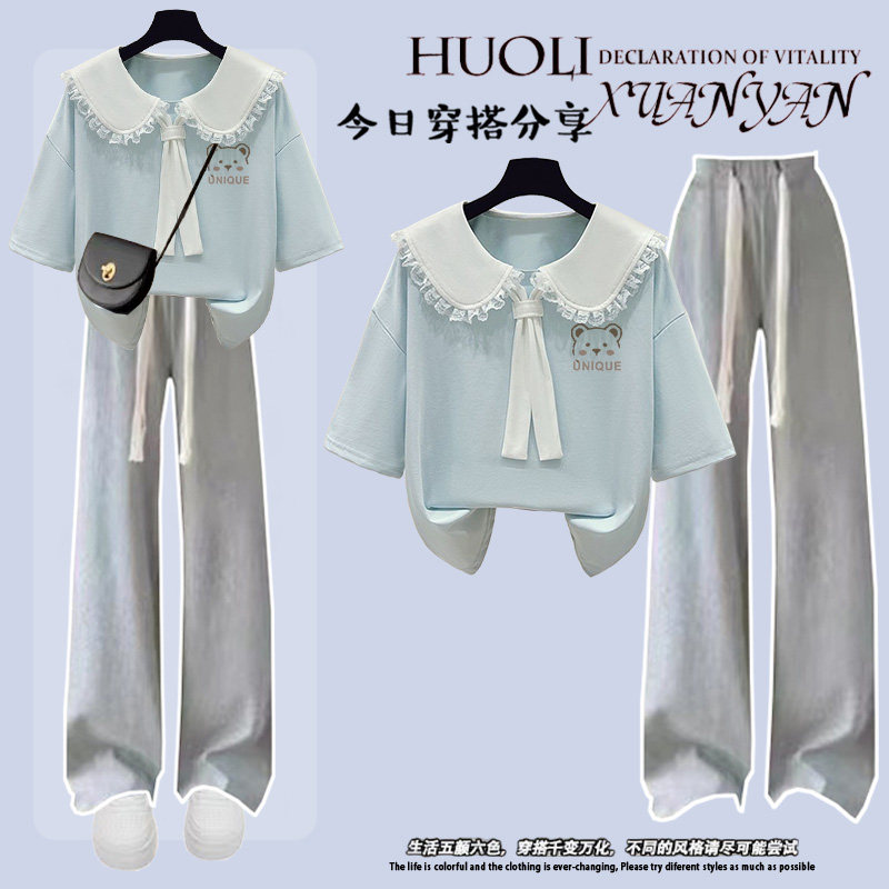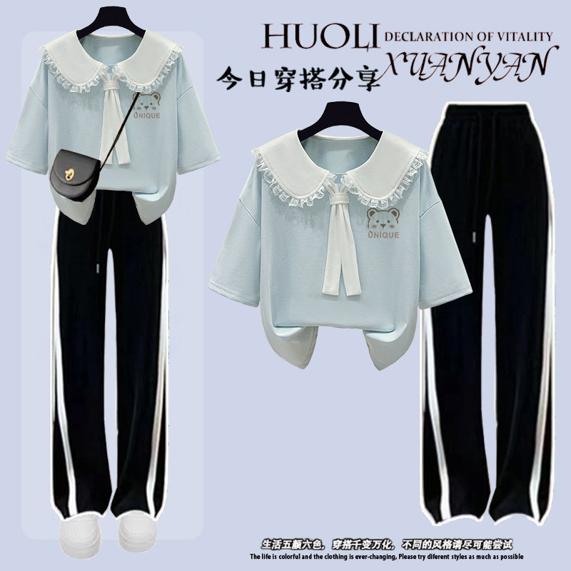 时尚潮流女童2026年新款洋气时髦套装夏中大童纯棉海军风短袖t恤