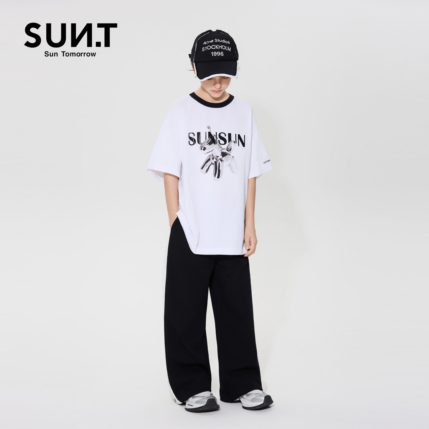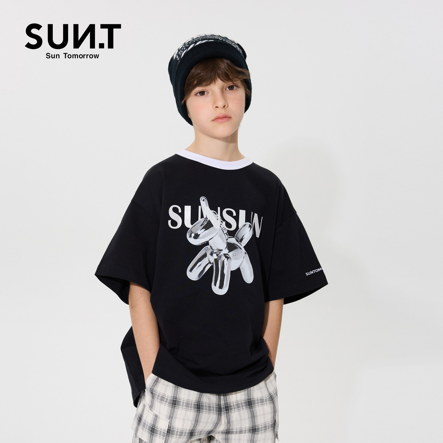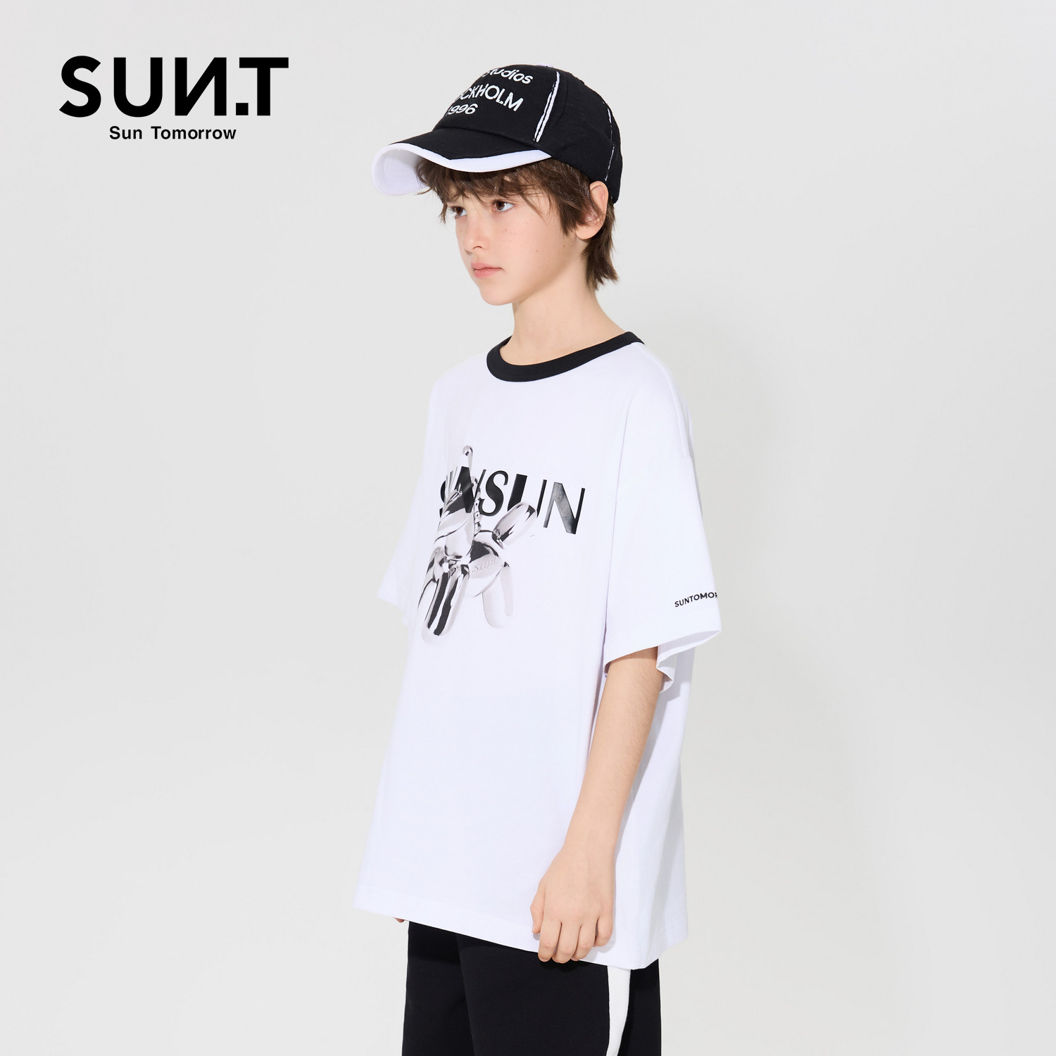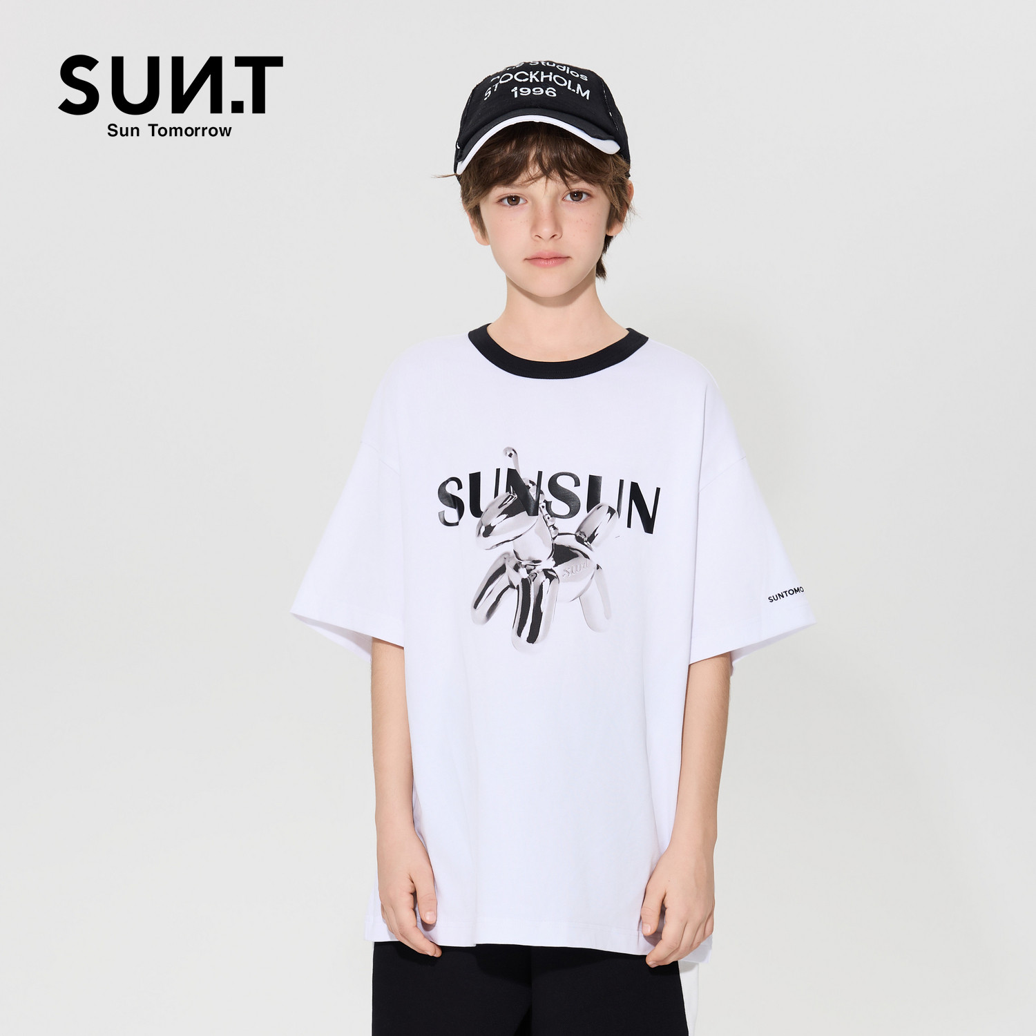 suntomorrow短袖T恤男童春装2026新款潮流印花撞色纯棉儿童上衣