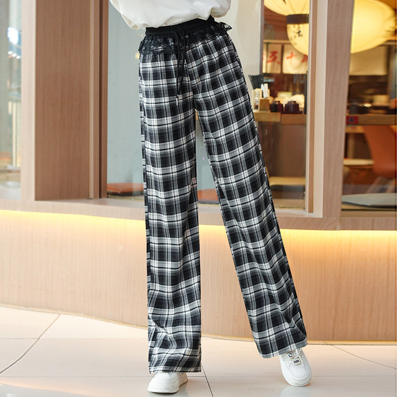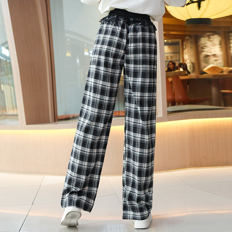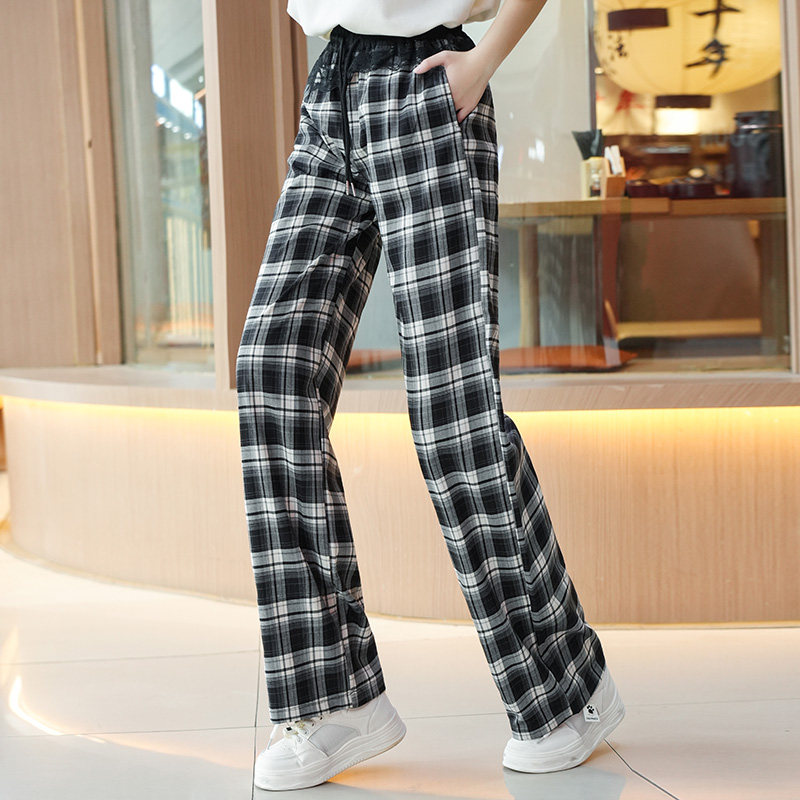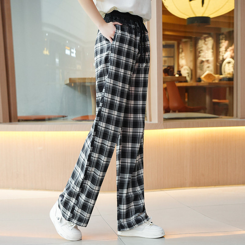 女童裤子2025夏季薄款青少年夏装休闲长裤初高中生时尚直筒格子裤